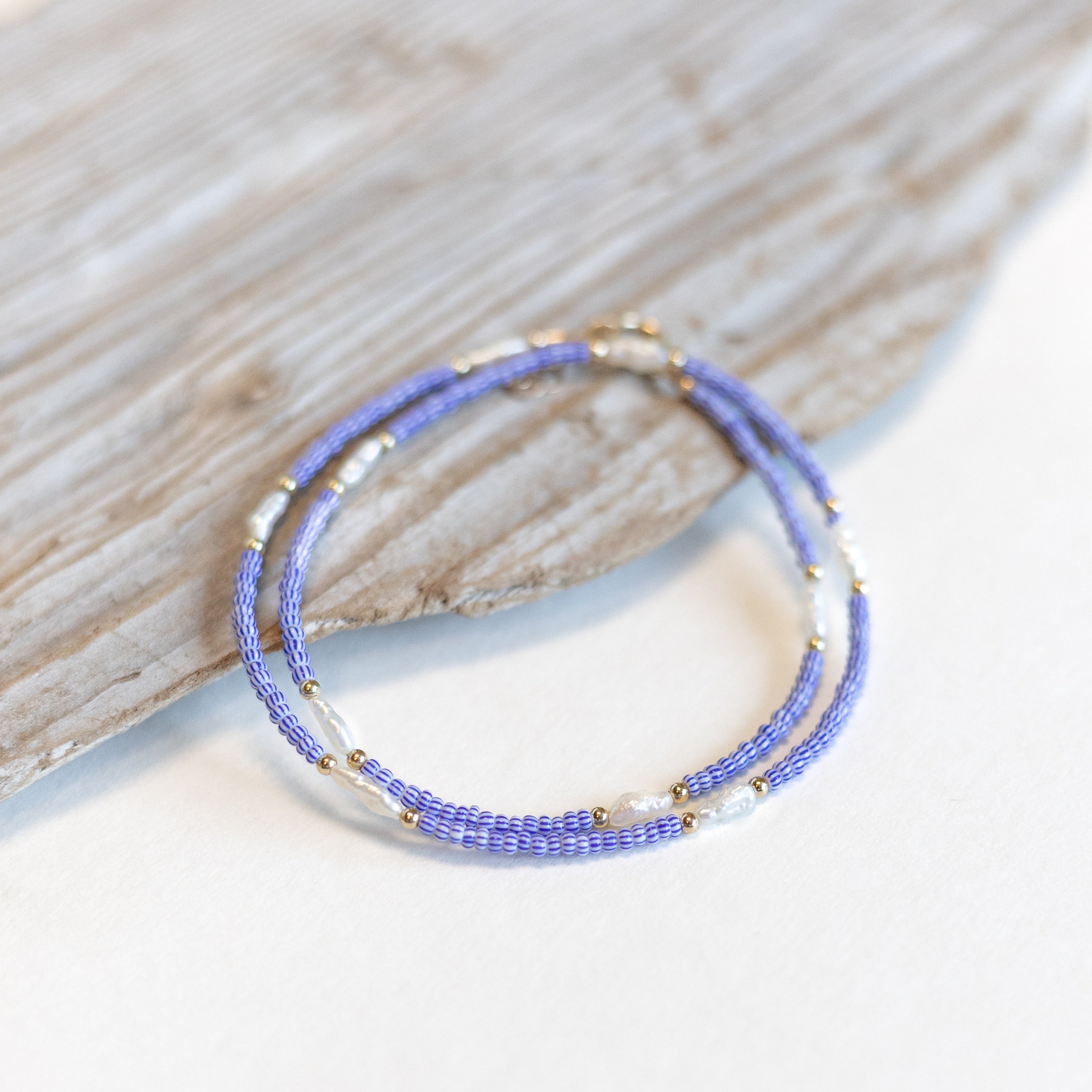 You can choose the single bracelet with the gold bar or the wrap bracelet with vintage freshwater pearls and gold filled beads. Or Both!