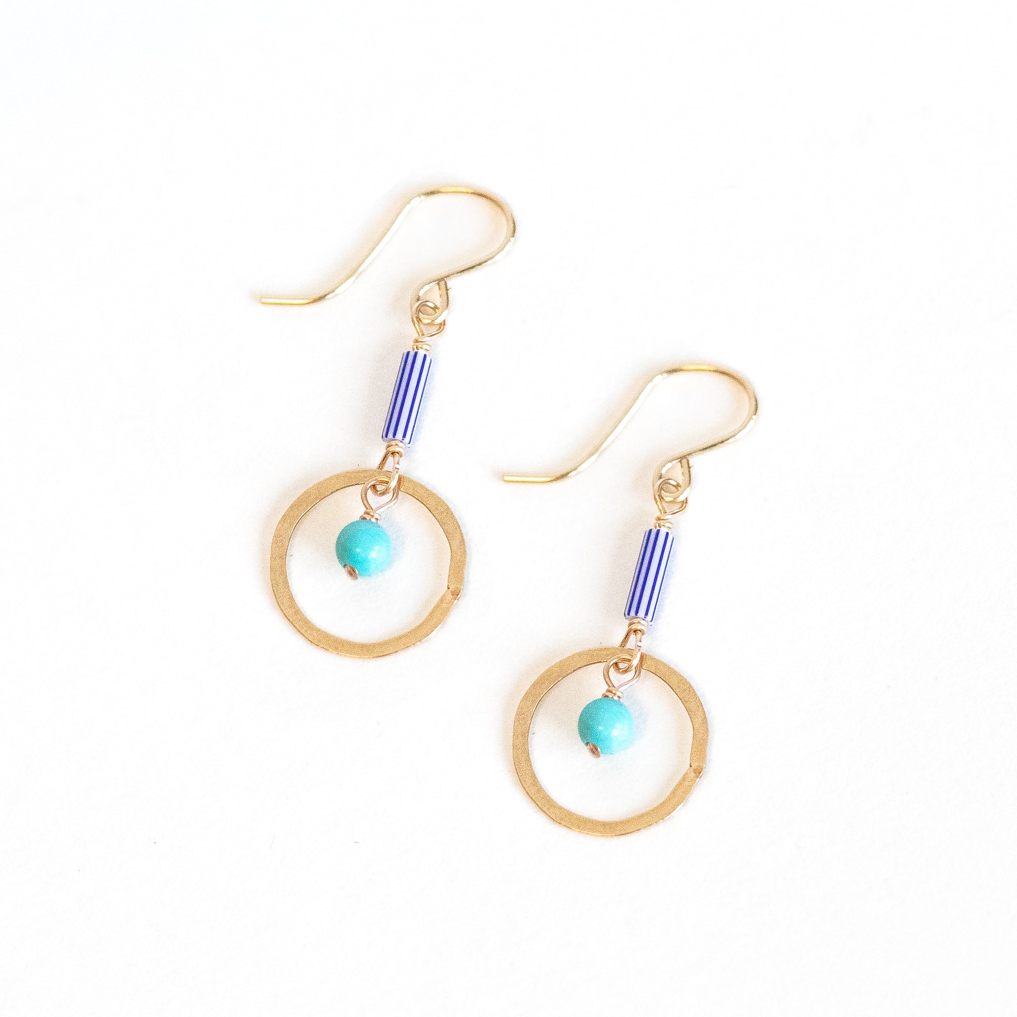 These match perfectly with the summer stripes bracelet! Blue white striped beads from Ghana and turquoise.