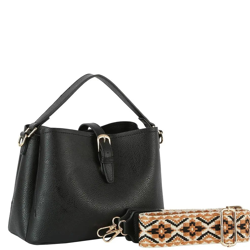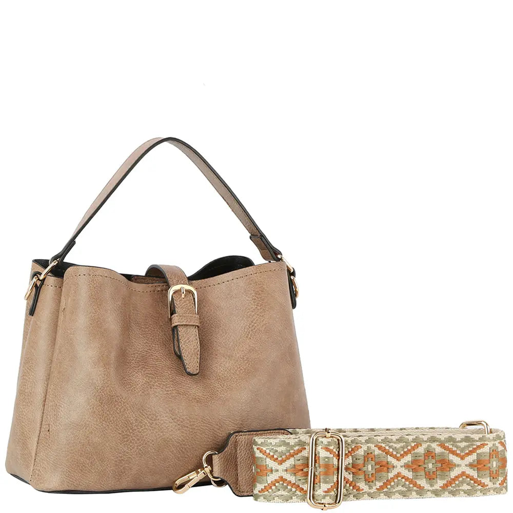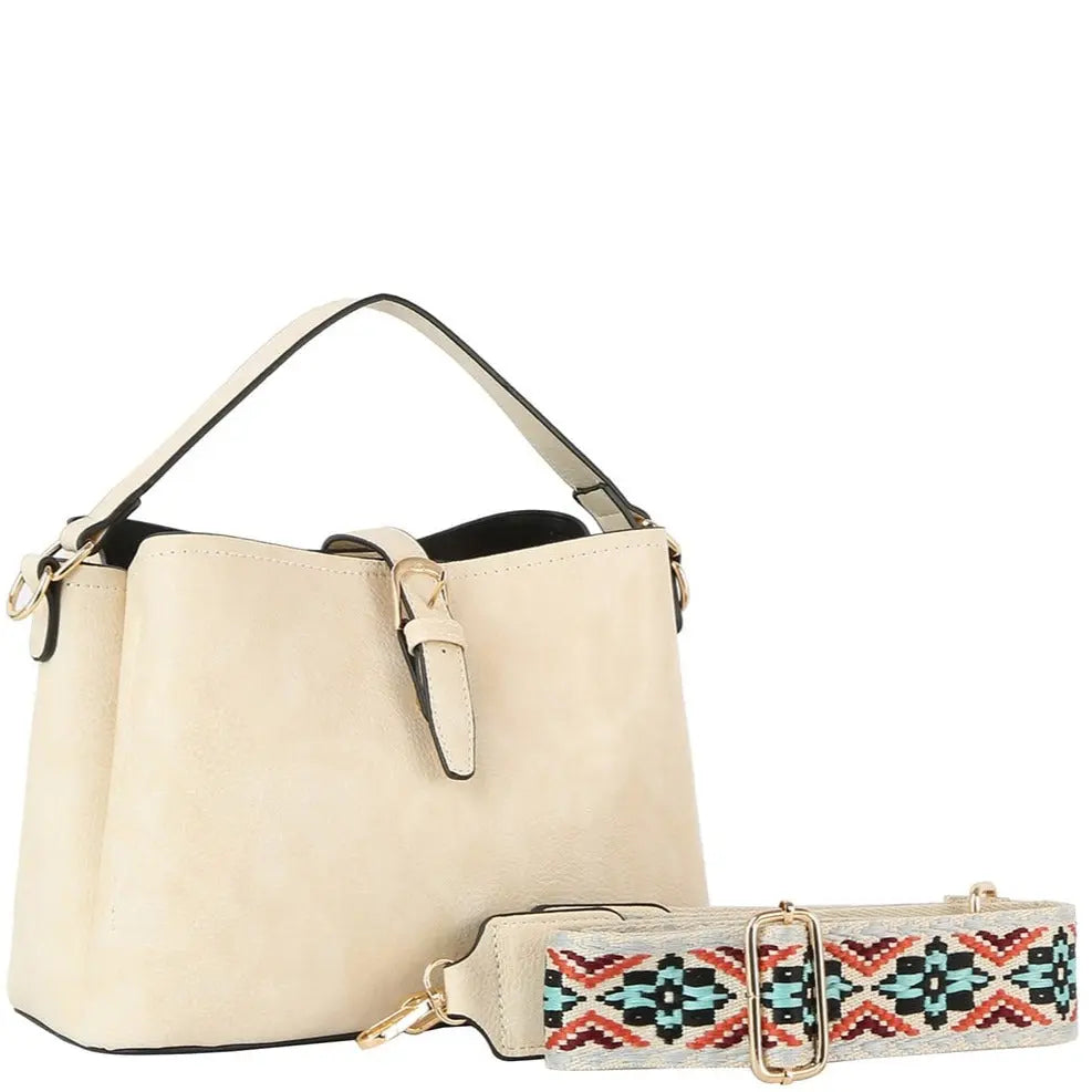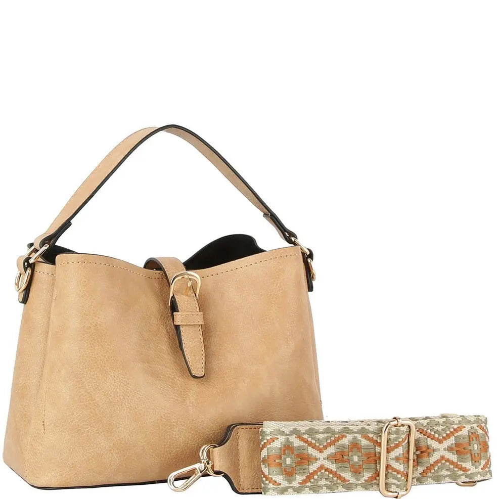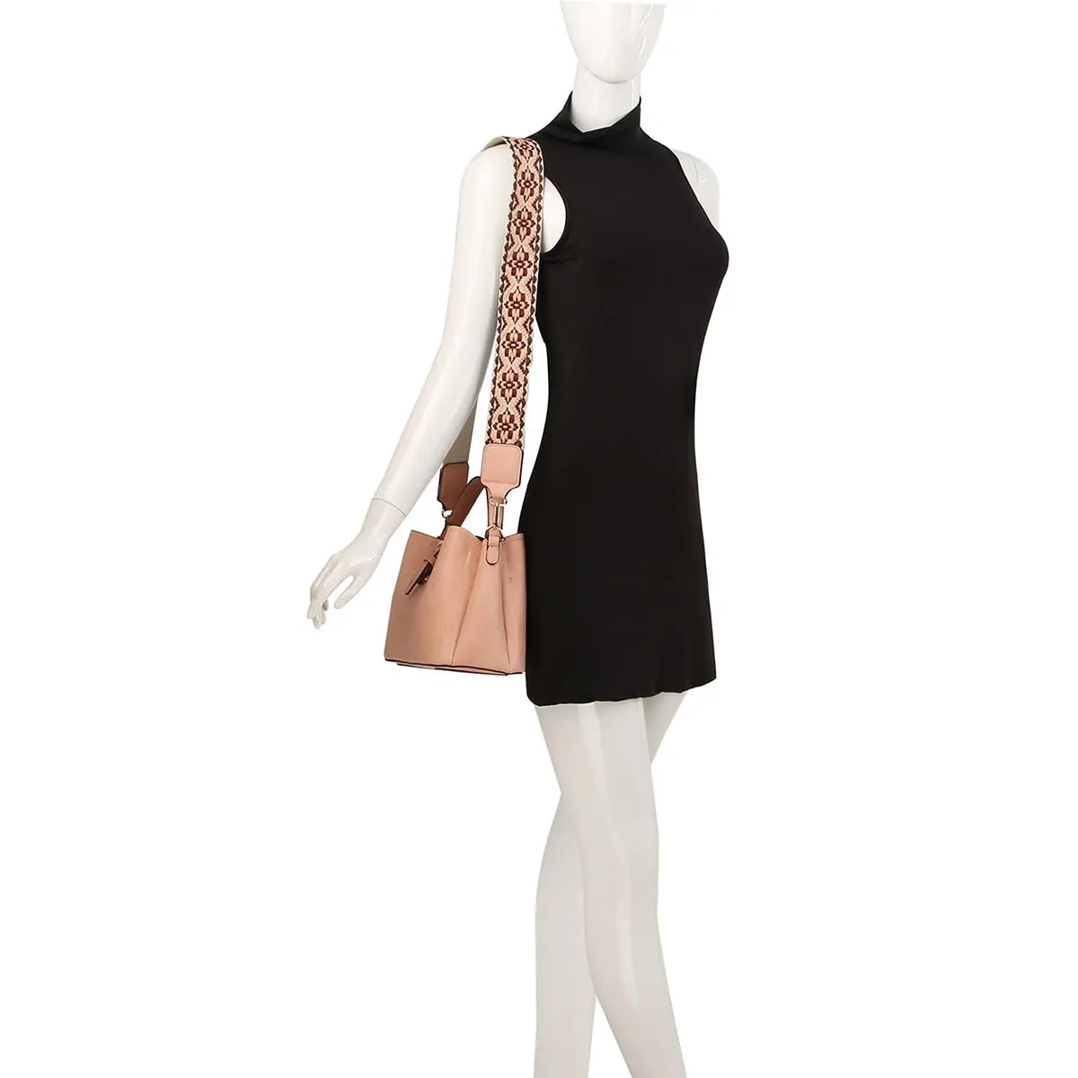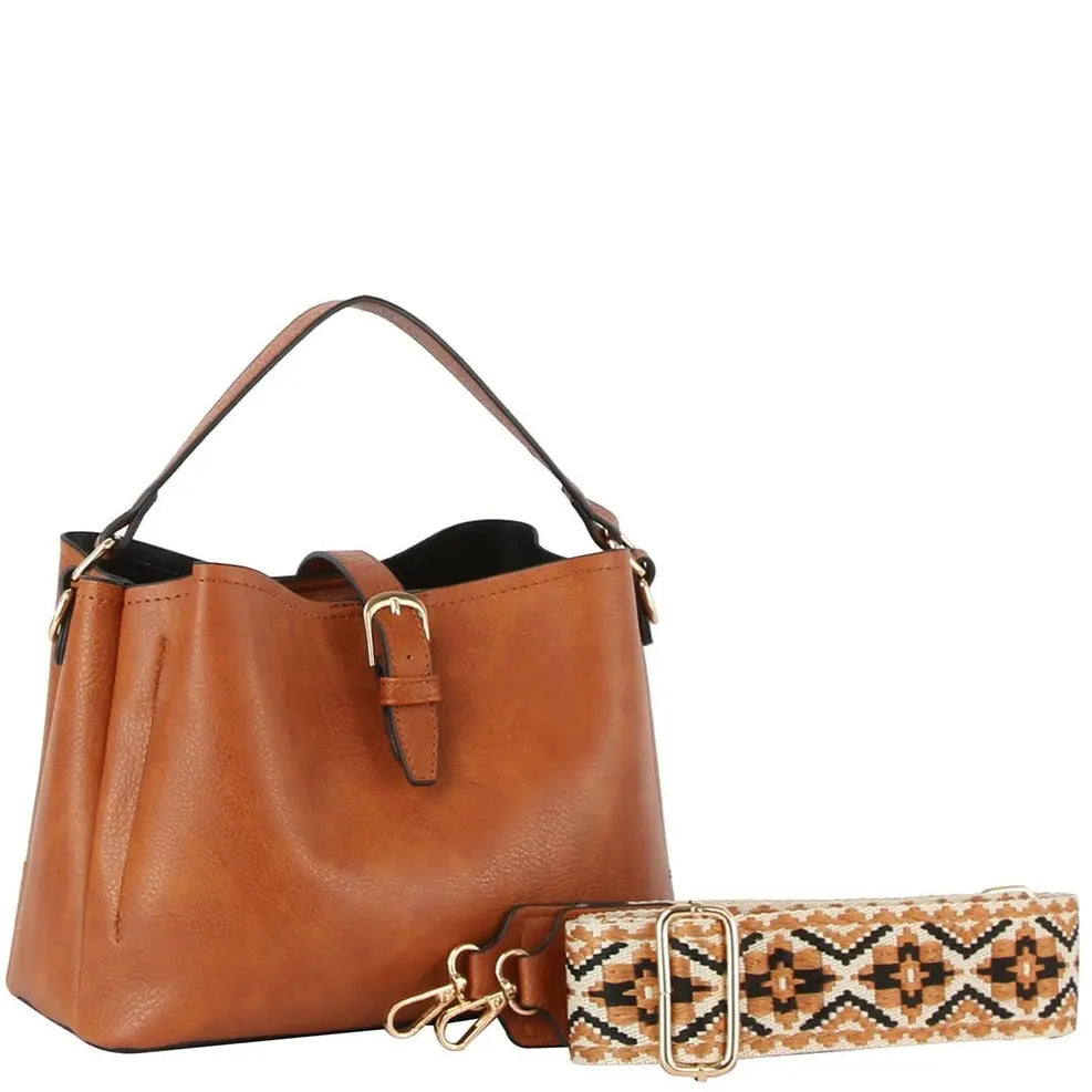 Elevate your style with our Buckle Flap Shoulder Bag, featuring a bold Aztec Pattern Guitar Strap. Crafted from faux vegan leather, this bag is both fashionable and animal-friendly. The Magnetic snap and Zip top closures keep your belongings secure, while the Gold-tone hardware adds a touch of sophistication. With a detachable shoulder strap and compact size of L 10 * H 7.5 * W 5 (5 D), this bag is perfect for any occasion.