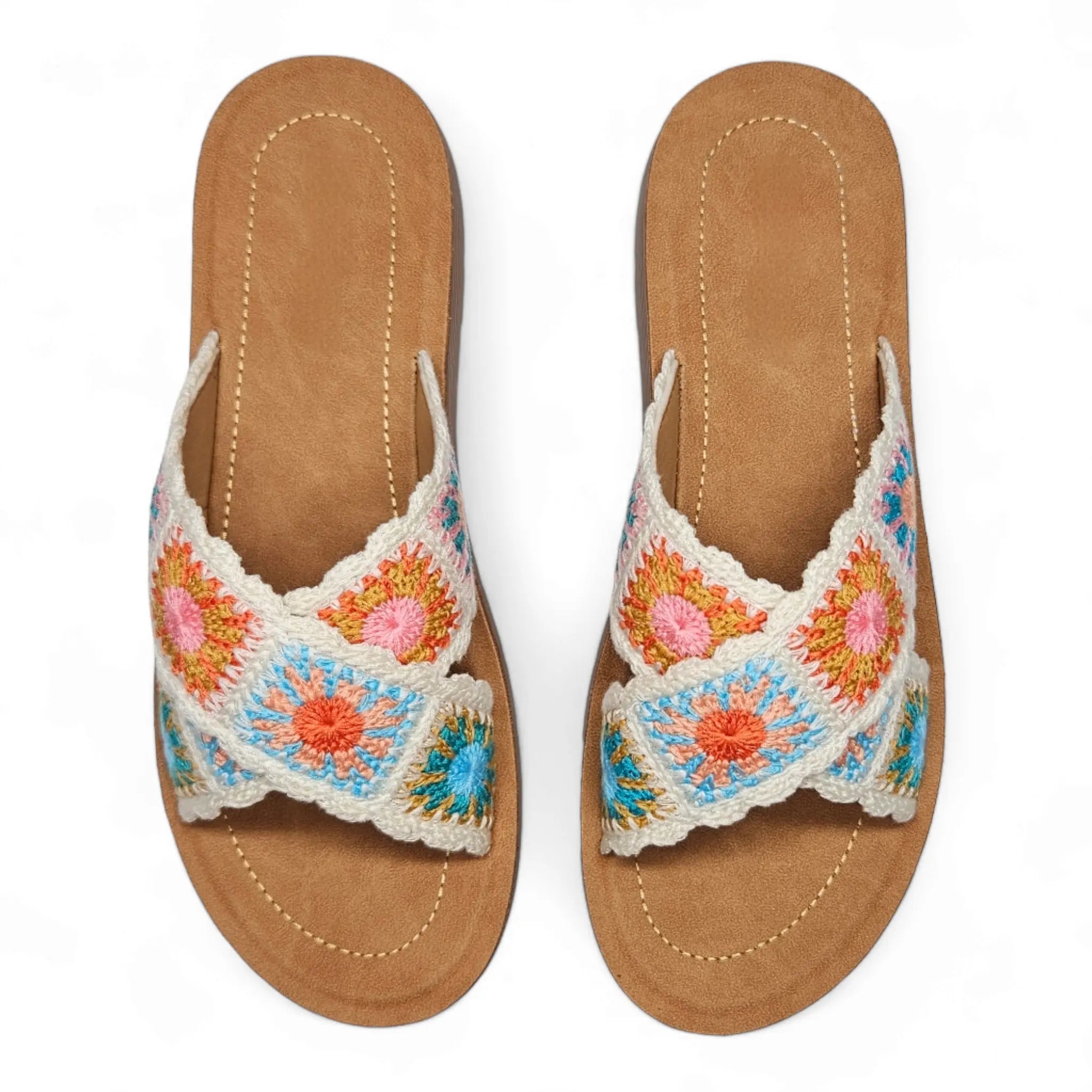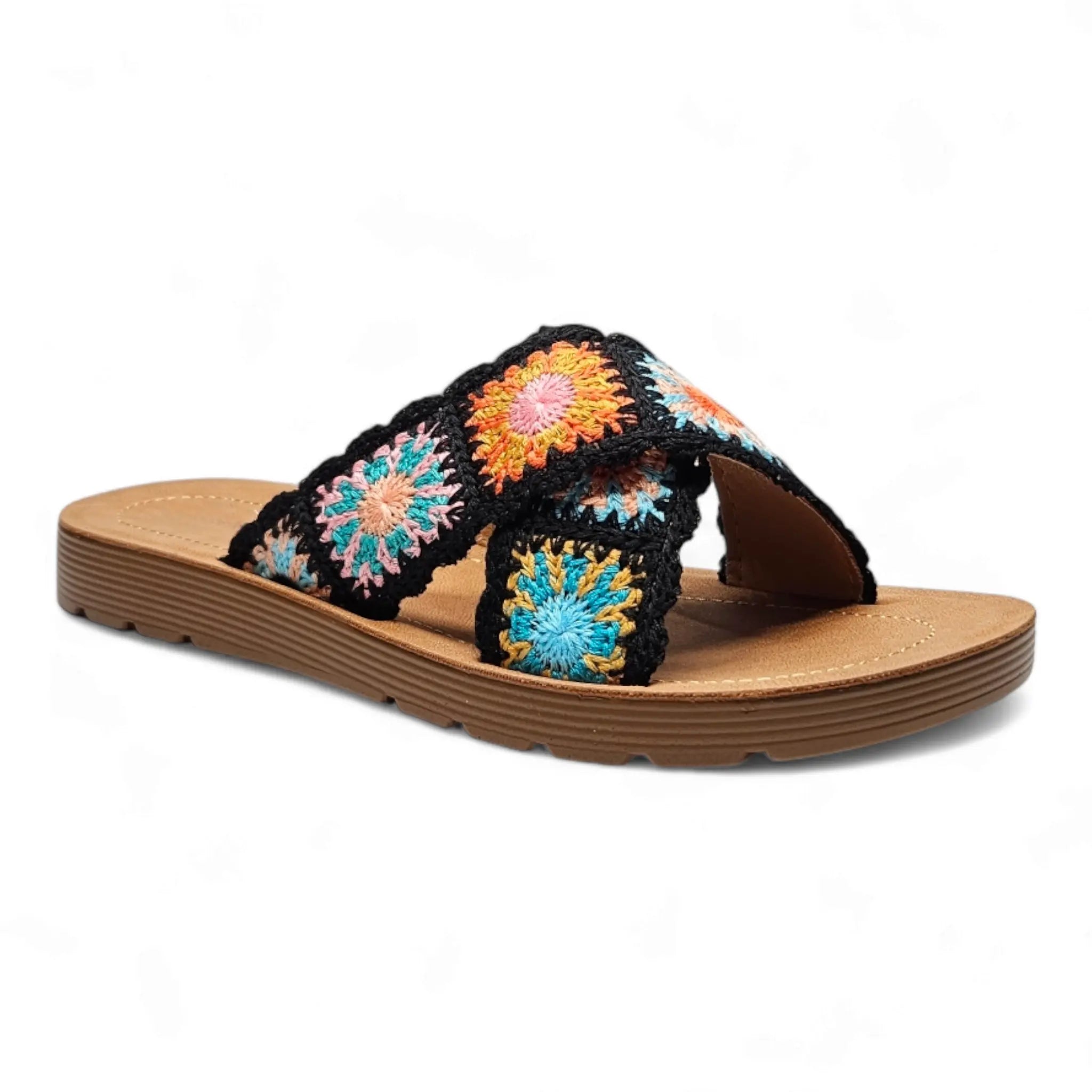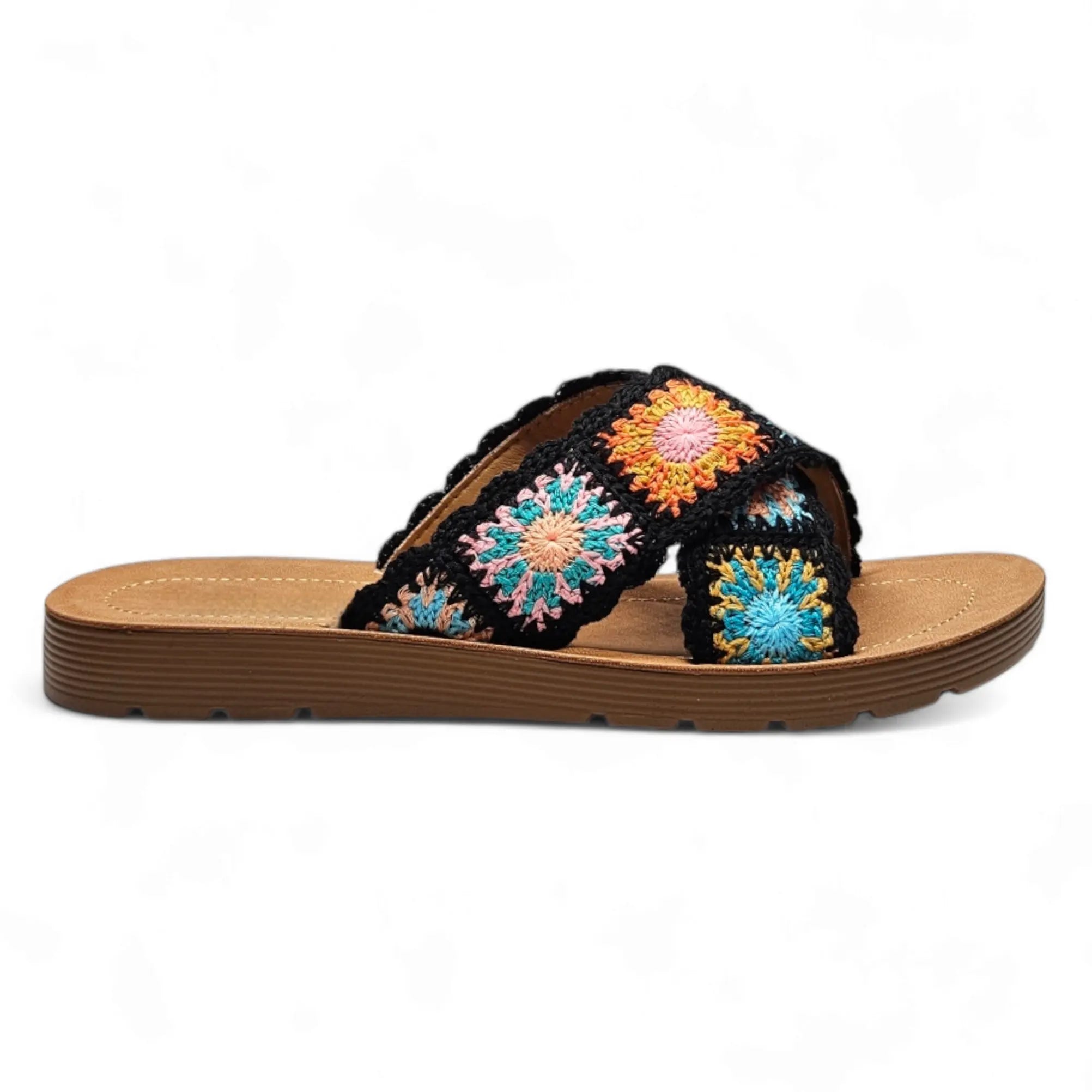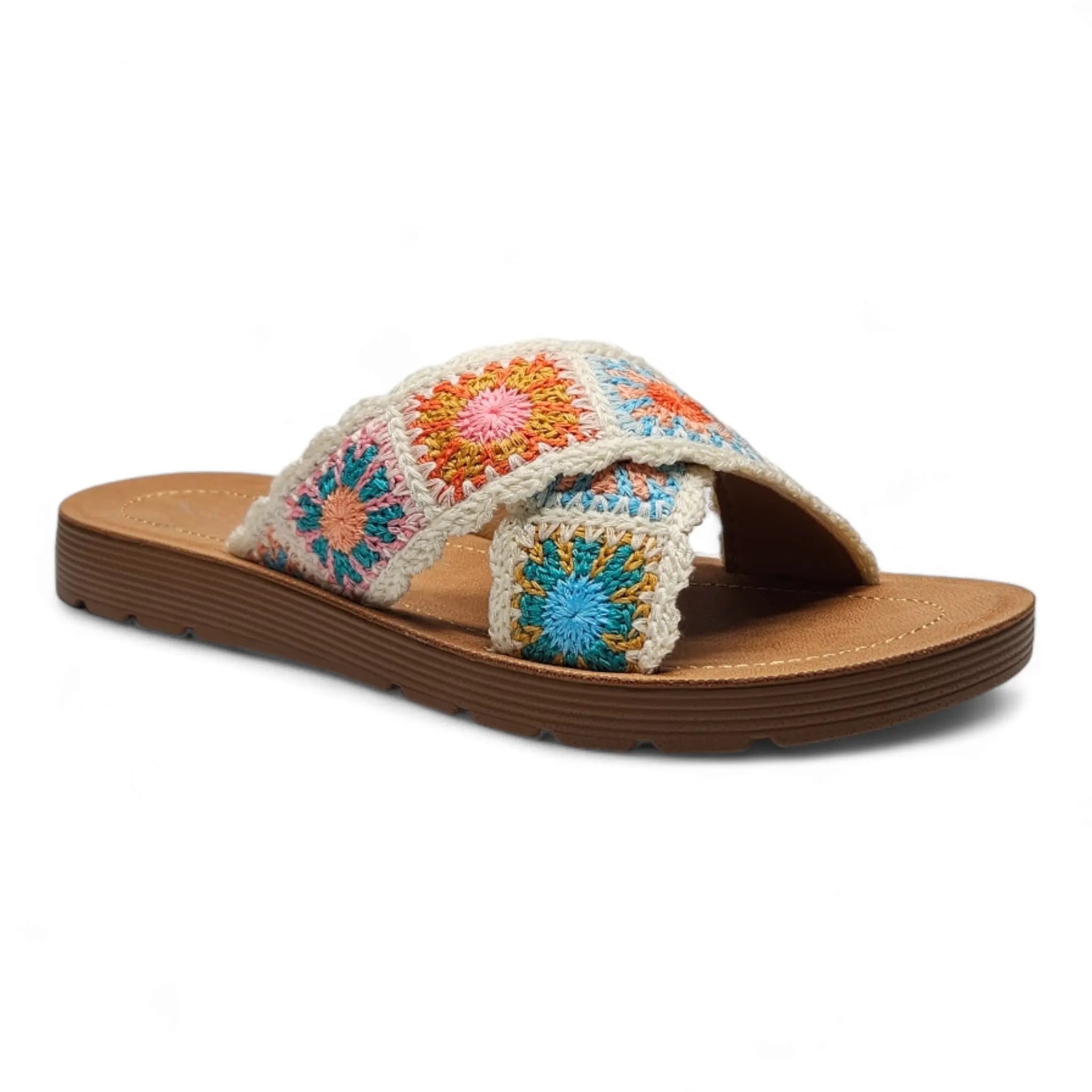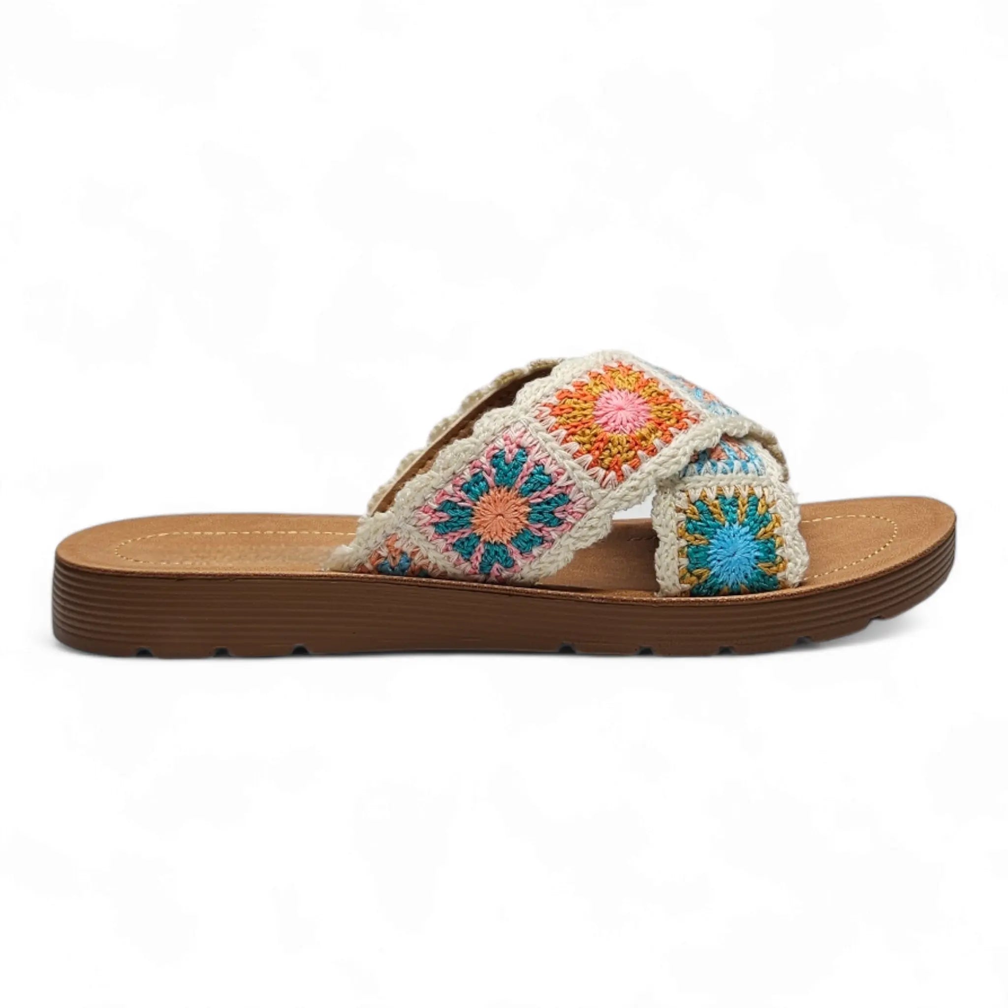 Introducing our Criss Cross Crochet Slides, the perfect combination of comfort and style. Made with a trendy criss-cross design and cozy crochet material, these slides will keep your feet happy and fashionable. Don't sacrifice comfort for style - get the best of both worlds with our Criss Cross Crochet Slides.