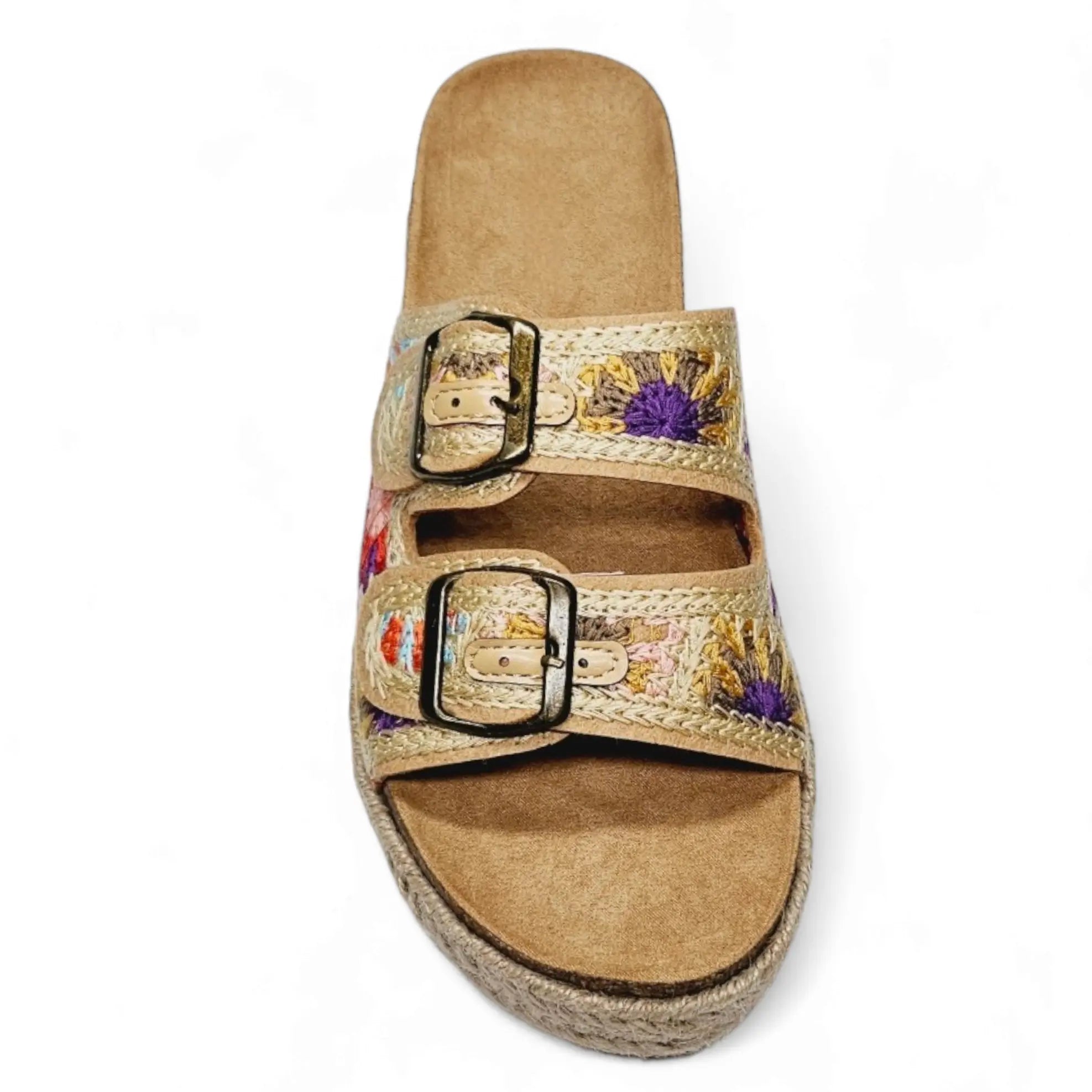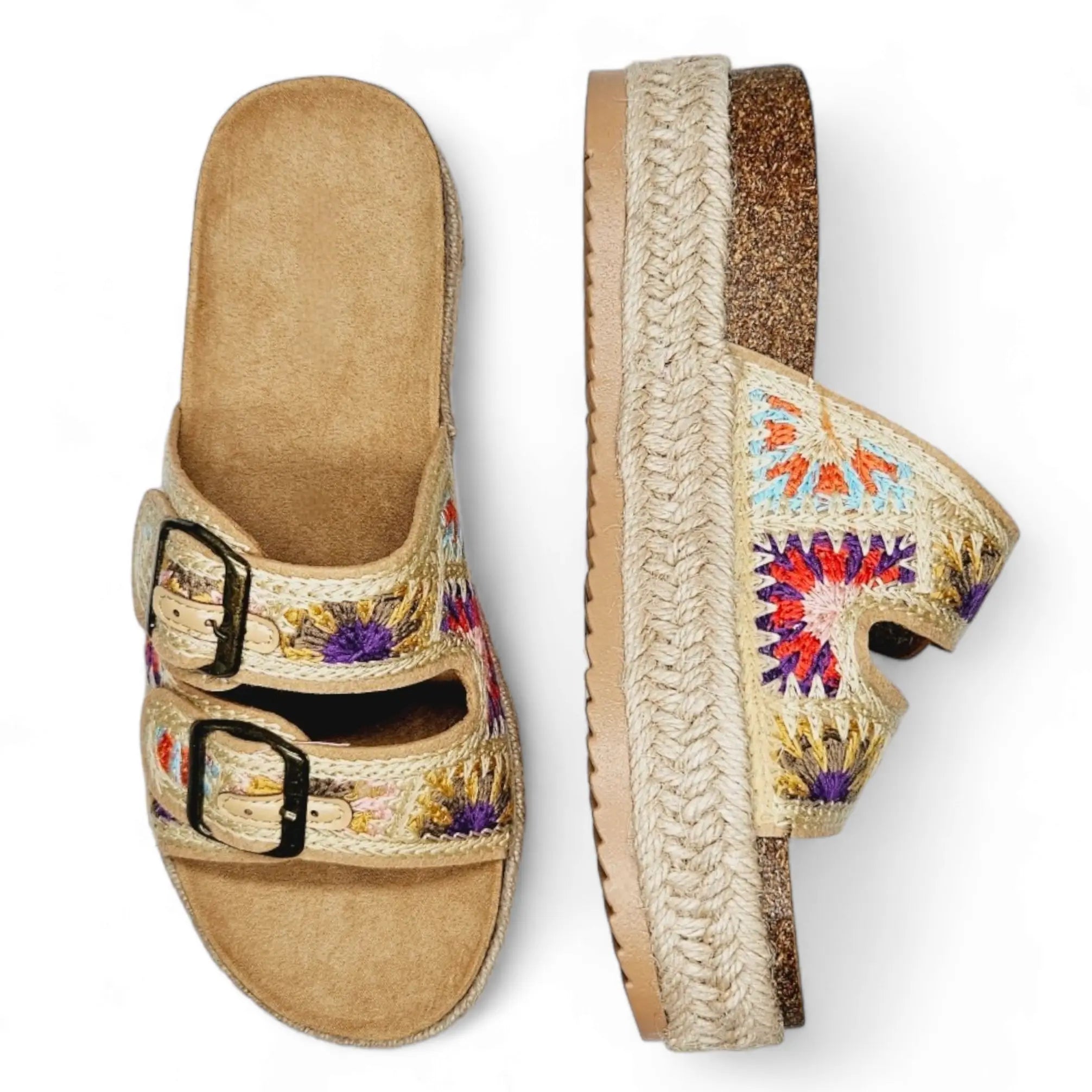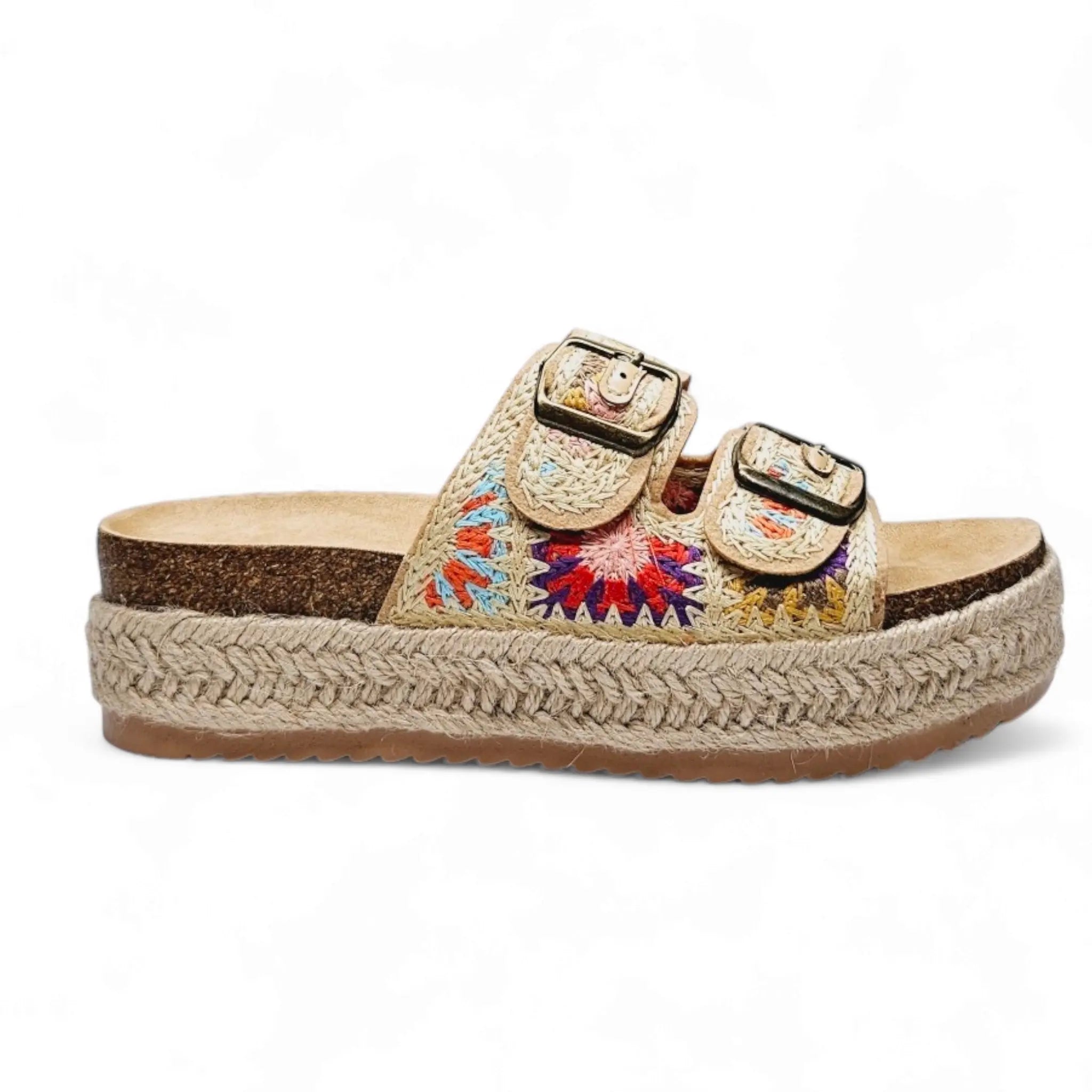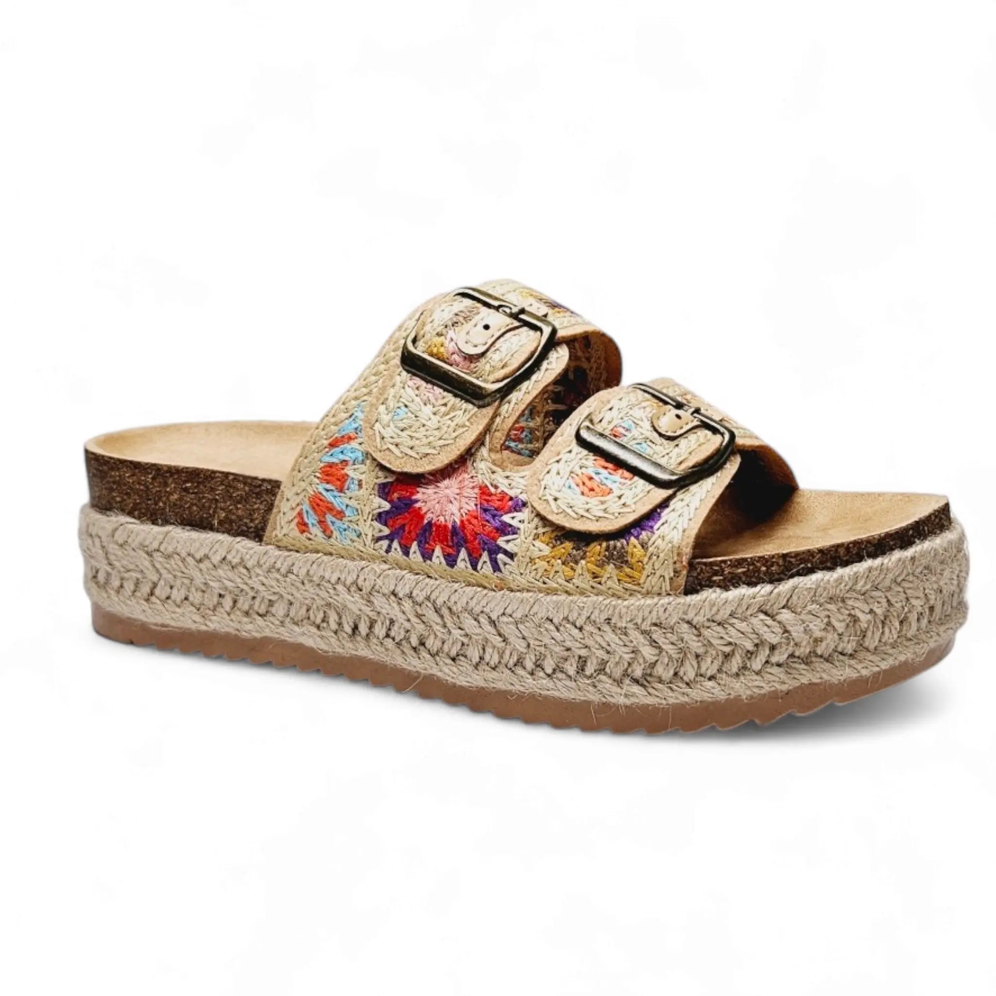Slip into summer with our Crochet Double Buckle Platform Slide! These stylish slides feature a crochet design and double buckle for a unique look. Plus, with a platform for added height and comfort, you'll be strutting in style all season long! Don't miss out on this must-have shoe.