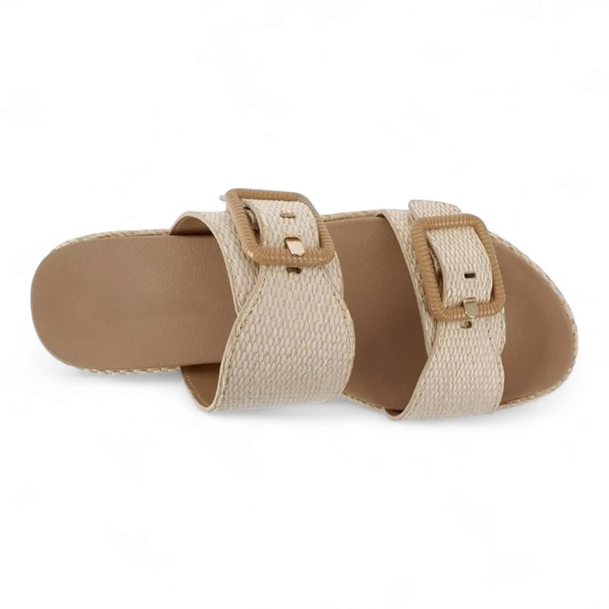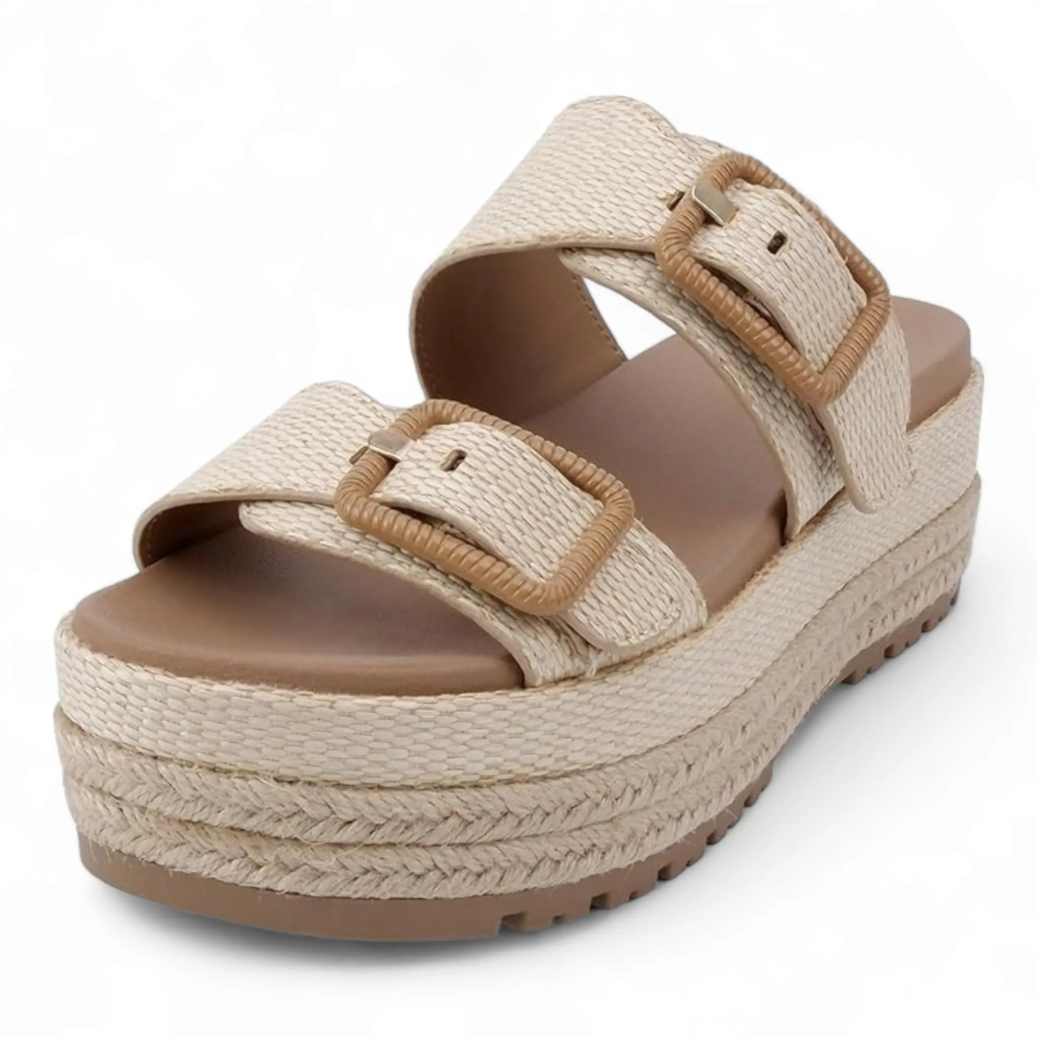 The Resort Women Round Toe Double Buckle Strap Slip-On Platform Wedge Sandal is the latest in fashion and trends, providing a stylish and sexy look for any occasion. With a platform height of 2 inches and a heel height of 2.5 inches, these sandals offer a comfortable lift. The double buckle strap design on the lug sole adds a touch of uniqueness to this slip-on style, making it easy to take on and off with adjustable buckle straps. Perfect for those looking for a trendy and comfortable sandal option.