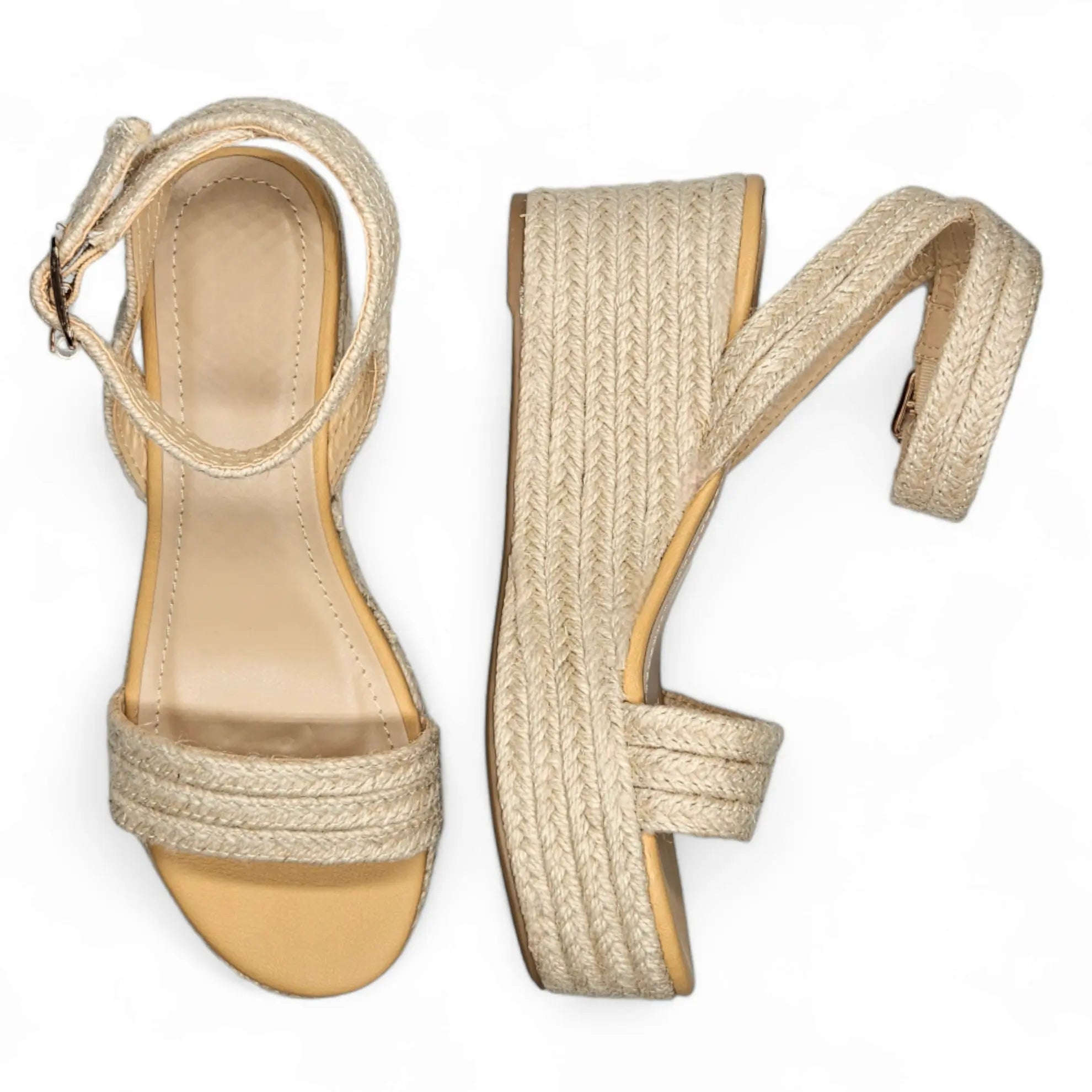 Elevate your style with the Beyond Platform Wedge Sandal. The adjustable ankle buckle closure ensures a perfect fit, while the platform sole and open toe add a touch of chicness to any outfit. Walk with confidence and make a statement with these sandals.