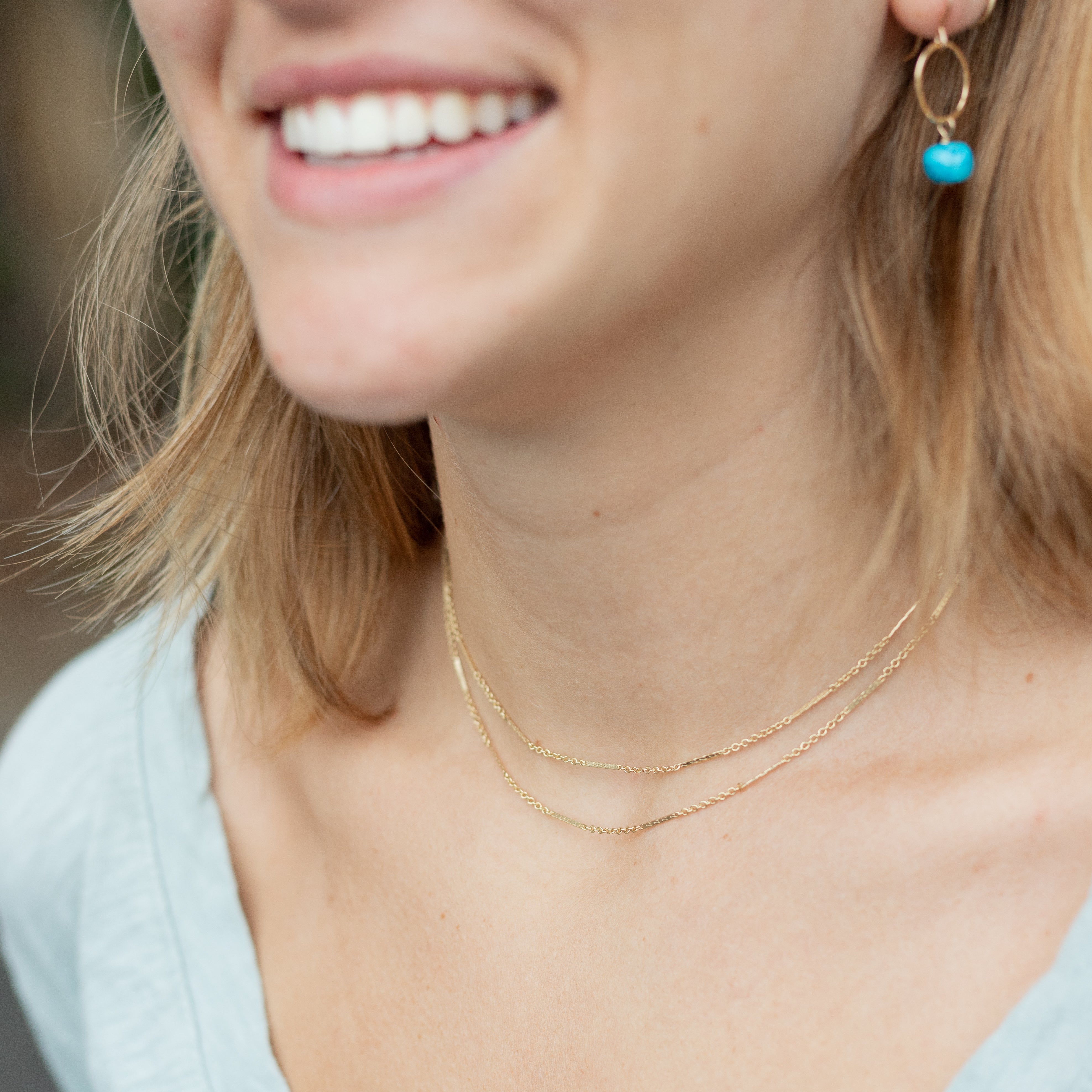 We are obsessed with this necklace! A 32" chain that can be worn long or wrapped twice to create a layered choker look.