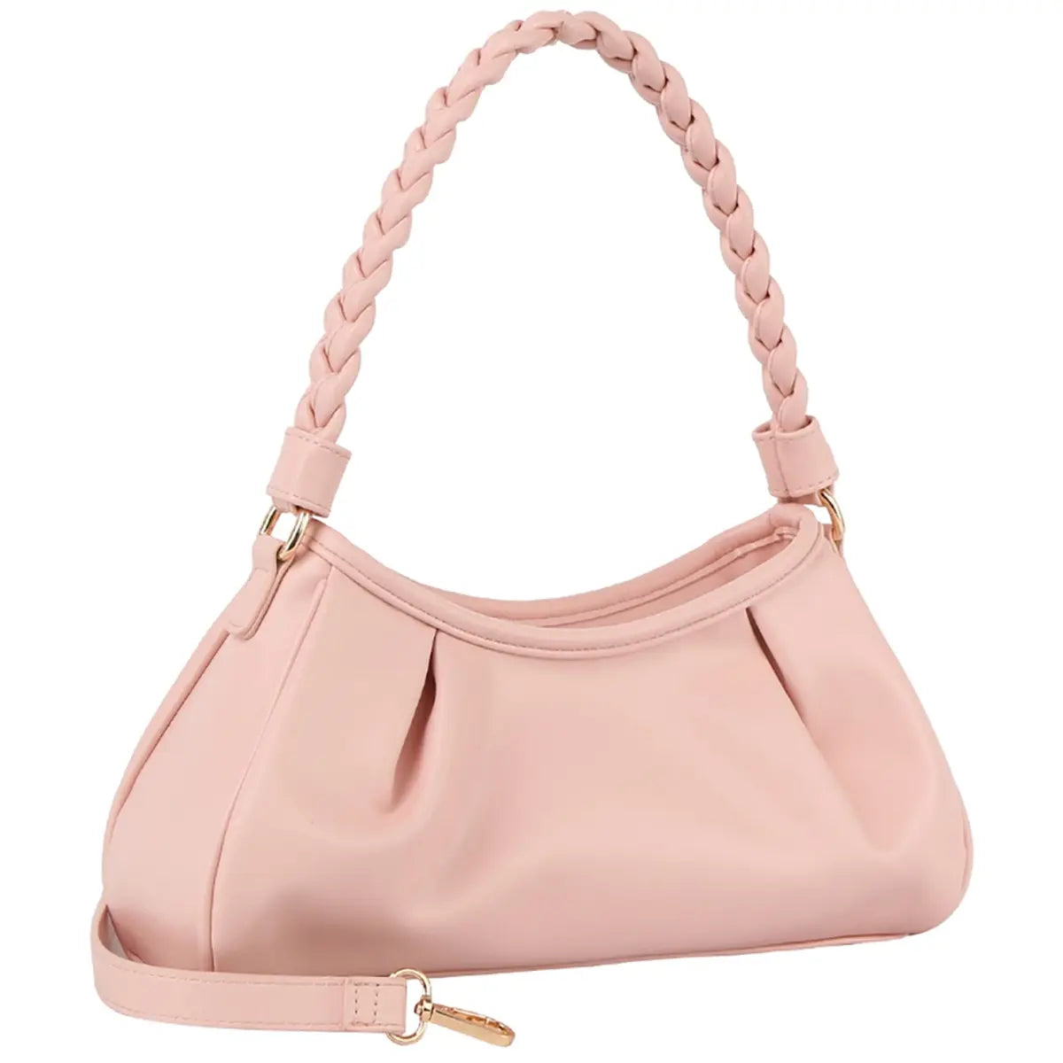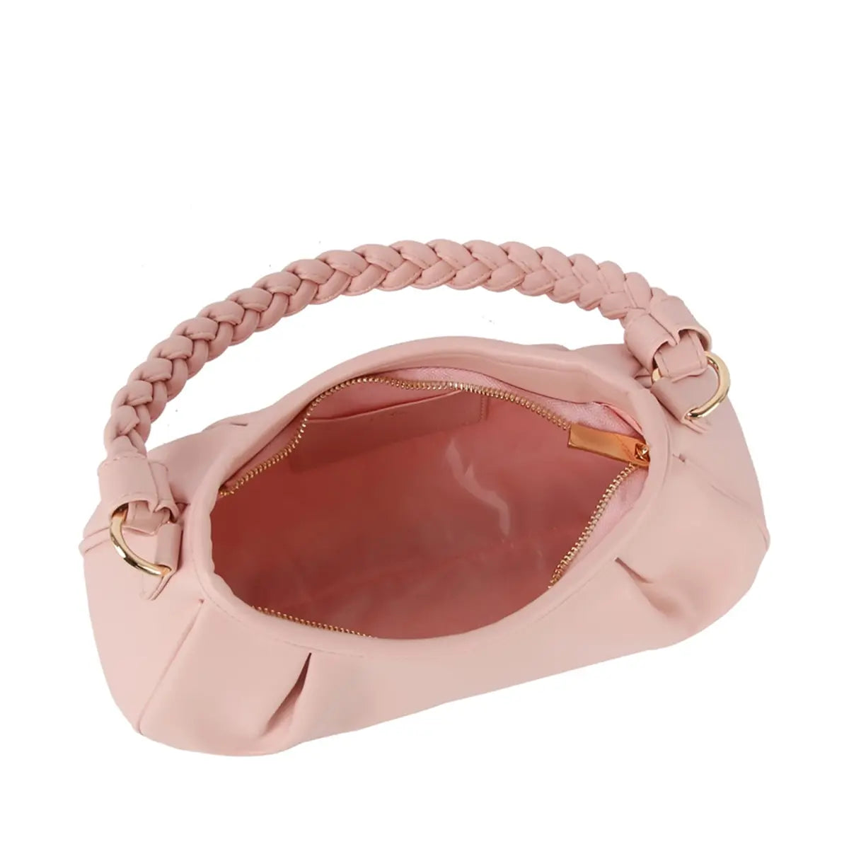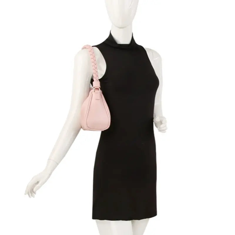 Introducing our Braided Strap Shoulder Bag – a stylish and versatile accessory for any outfit. Made from faux vegan leather and featuring a zip top closure and gold-tone hardware, this bag is both practical and chic. Measuring L 12 * H 5.5 * W 4 (8 D), it's the perfect size for all your everyday essentials. Elevate any look with this must-have accessory!