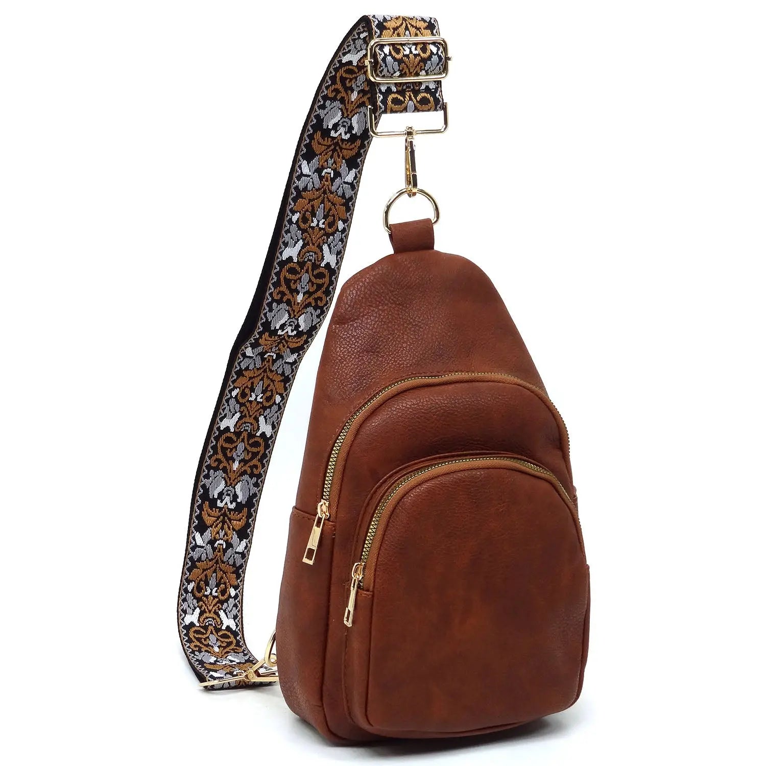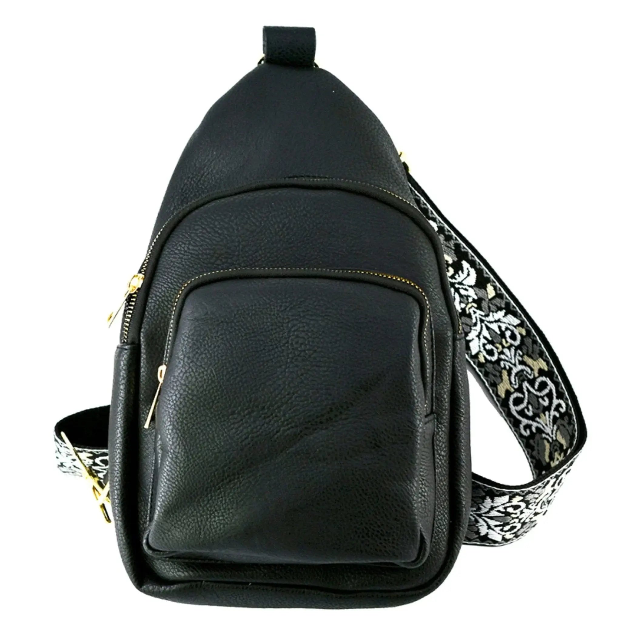 Carry your guitar and essentials in style with our Fashion Guitar Strap Sling Bag! Made of faux vegan leather, this backpack features a zip top closure and gold-tone hardware. The detachable shoulder strap (Guitar strap-2") adds versatility and comfort. L 8 * H 12 * W 3 for the perfect size. Let our bag inspire your music and fashion senses!