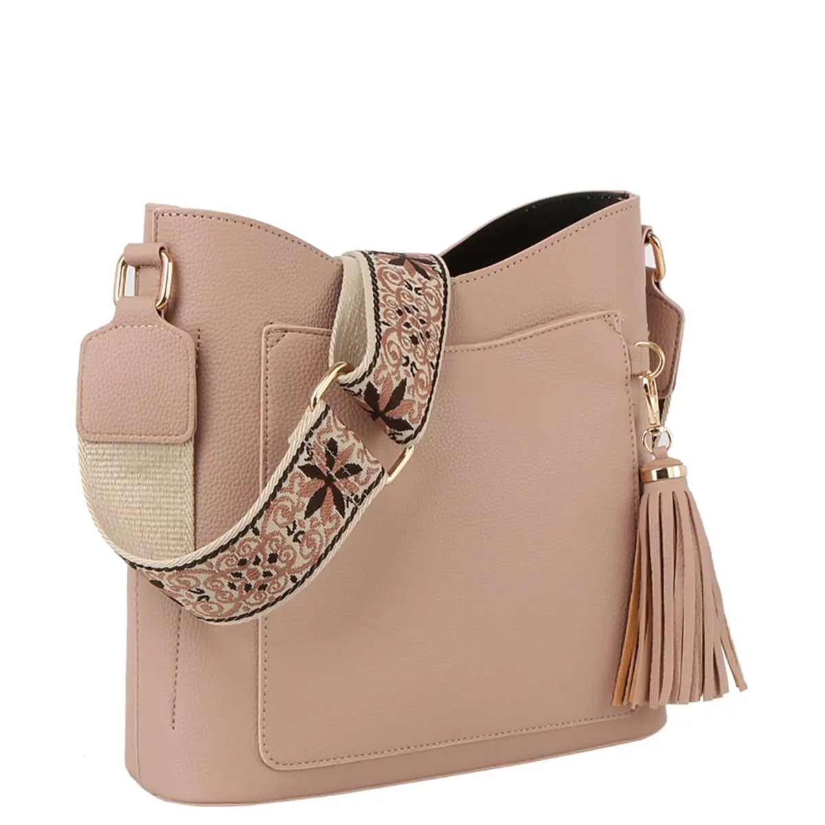 Experience the ultimate combination of style and convenience with our T Pocket Crossbody Hobo Bag! Made of luxurious faux vegan leather, this bag features a trendy tassel front pocket, a secure zip top closure, and gold-tone hardware. The adjustable guitar shoulder strap adds a touch of edgy flair. Measuring L 11.3" x H 10.5" x W 3.5", it's the perfect size to carry your essentials in style. Upgrade your wardrobe with this must-have accessory now!