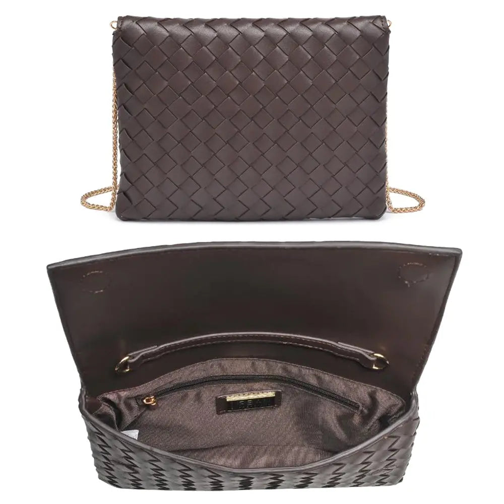 This vegan leather beauty boasts a chic woven design and an elegant envelope shape. With a magnetic closure and a detachable chain strap, it’s versatile enough to go from day to night effortlessly. Inside, it’s fabric lined with a handy slip pocket for all your essentials. Trendy, stylish, and oh-so-sophisticated ? this clutch is a must-have for any fashionista! Item Type: Clutch Material: Vegan Leather Closure: Magnetic Exterior Details: Woven Design, Envelope Shape, Detachable Chain Strap Interior Details: Fabric Lined, 1 Slip Pocket 10.25” L x 1” W x 7.875” H