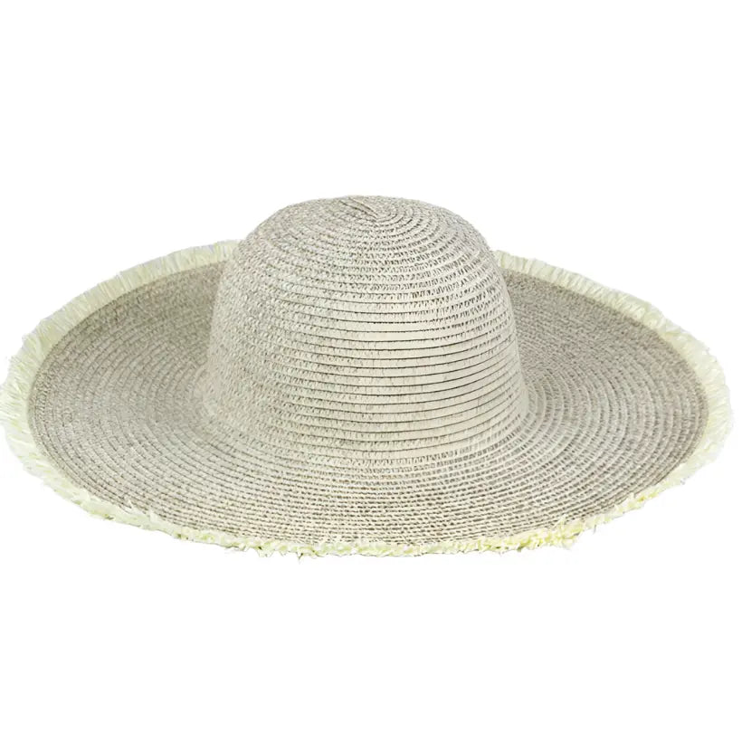 Get ready to hit the beach in style with our Frayed Floppy Straw Hat! Made with 100% paper, this hat boasts a unique two tone mixed color design with a frayed edge. Perfect for adding a touch of elegance to any summer outfit. Stay cool and protected from the sun with this must-have accessory.