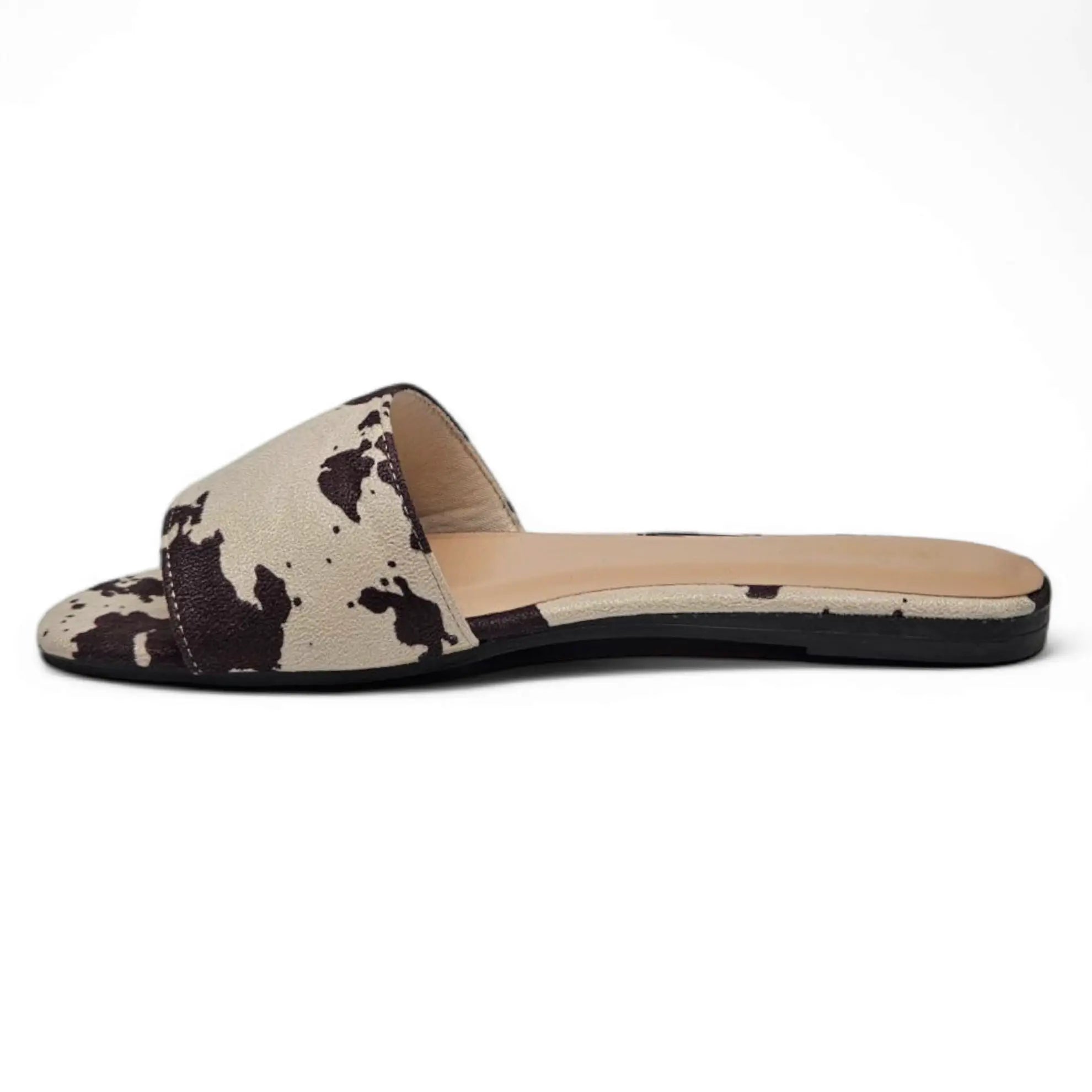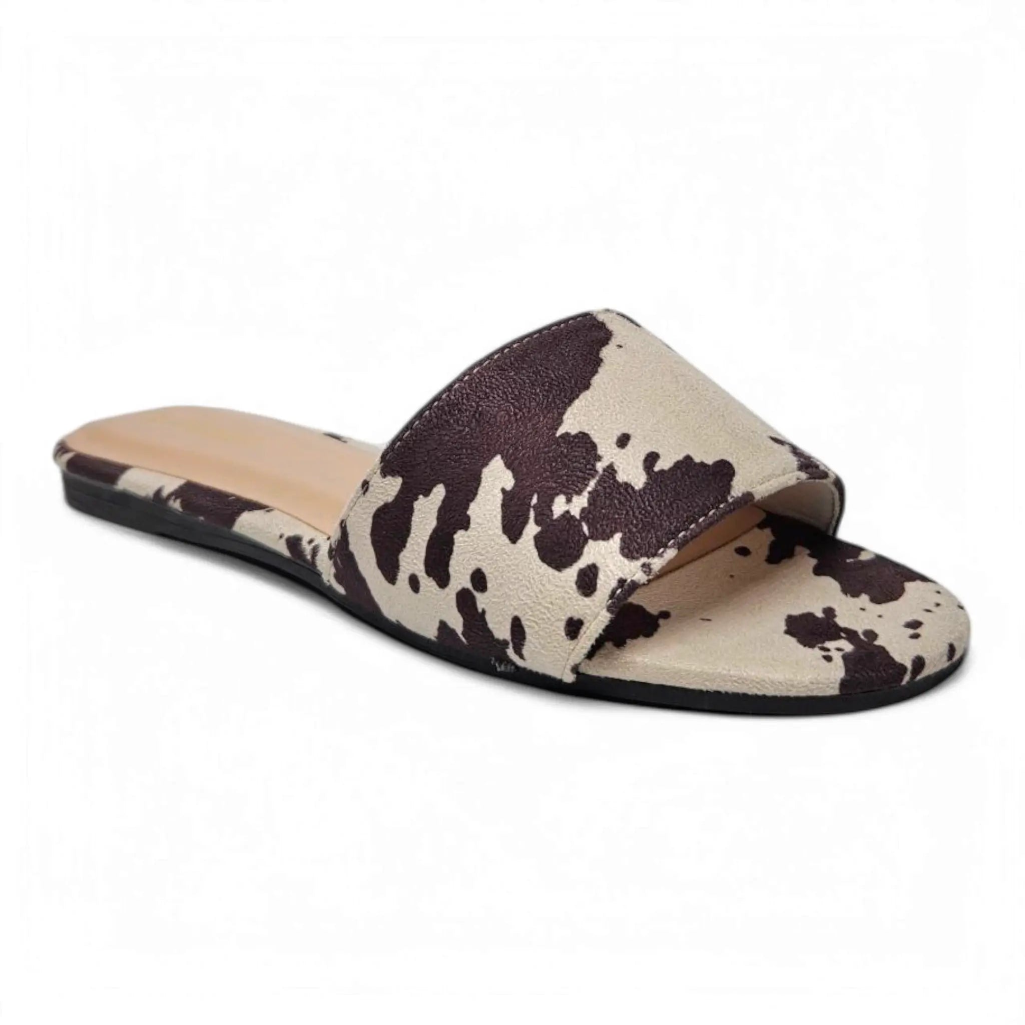 Step into style and comfort with our Best Wide Band Cow Faux Slides! Made with premium faux cow leather, these slides will add a touch of luxury to your everyday look. The wide band design provides a secure fit while making a statement. Upgrade your wardrobe with these must-have slides!