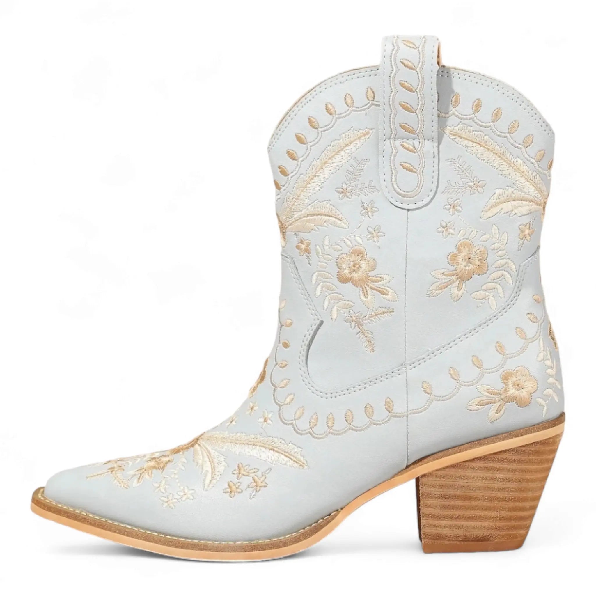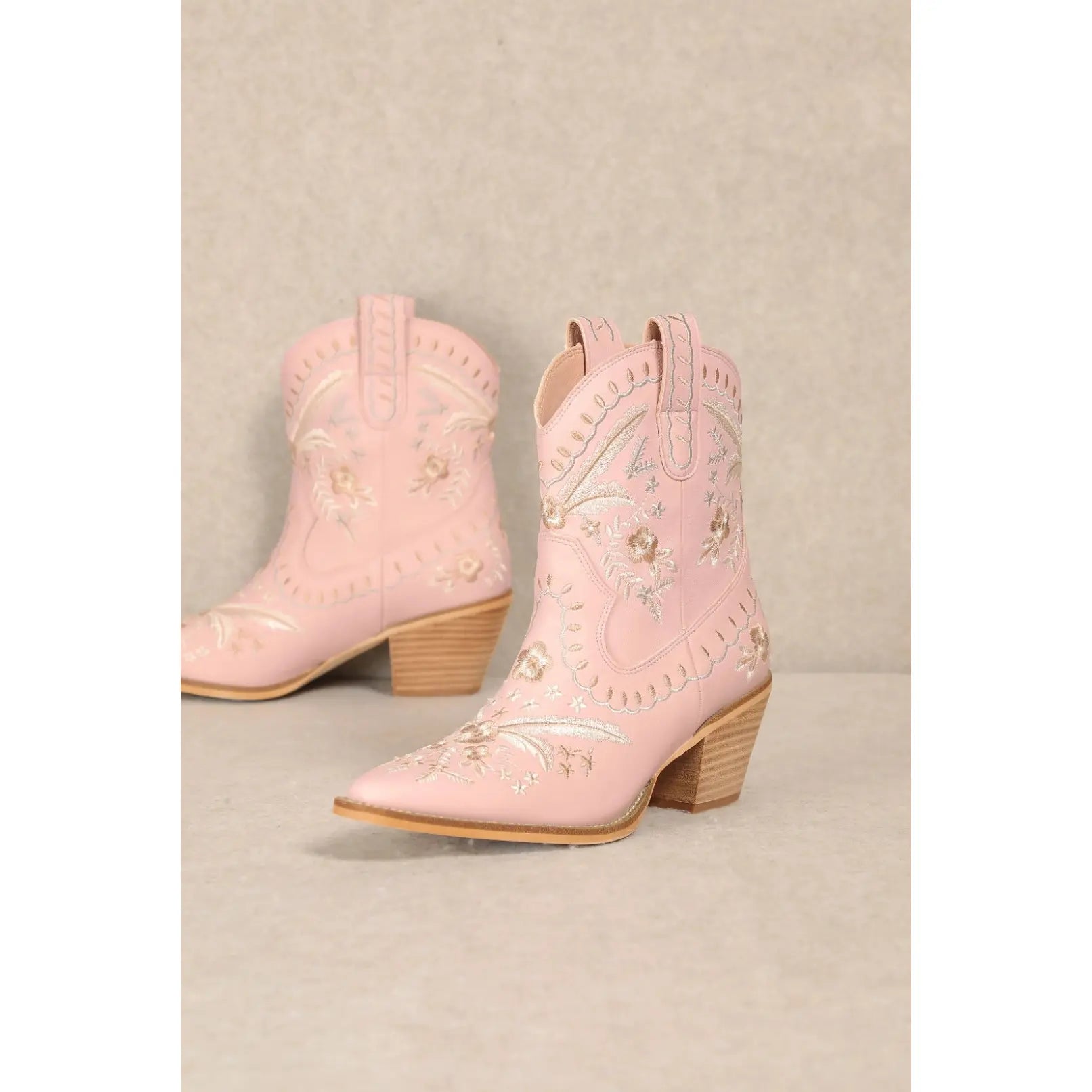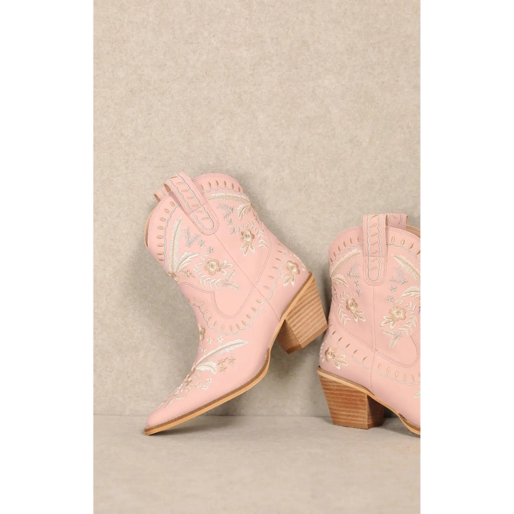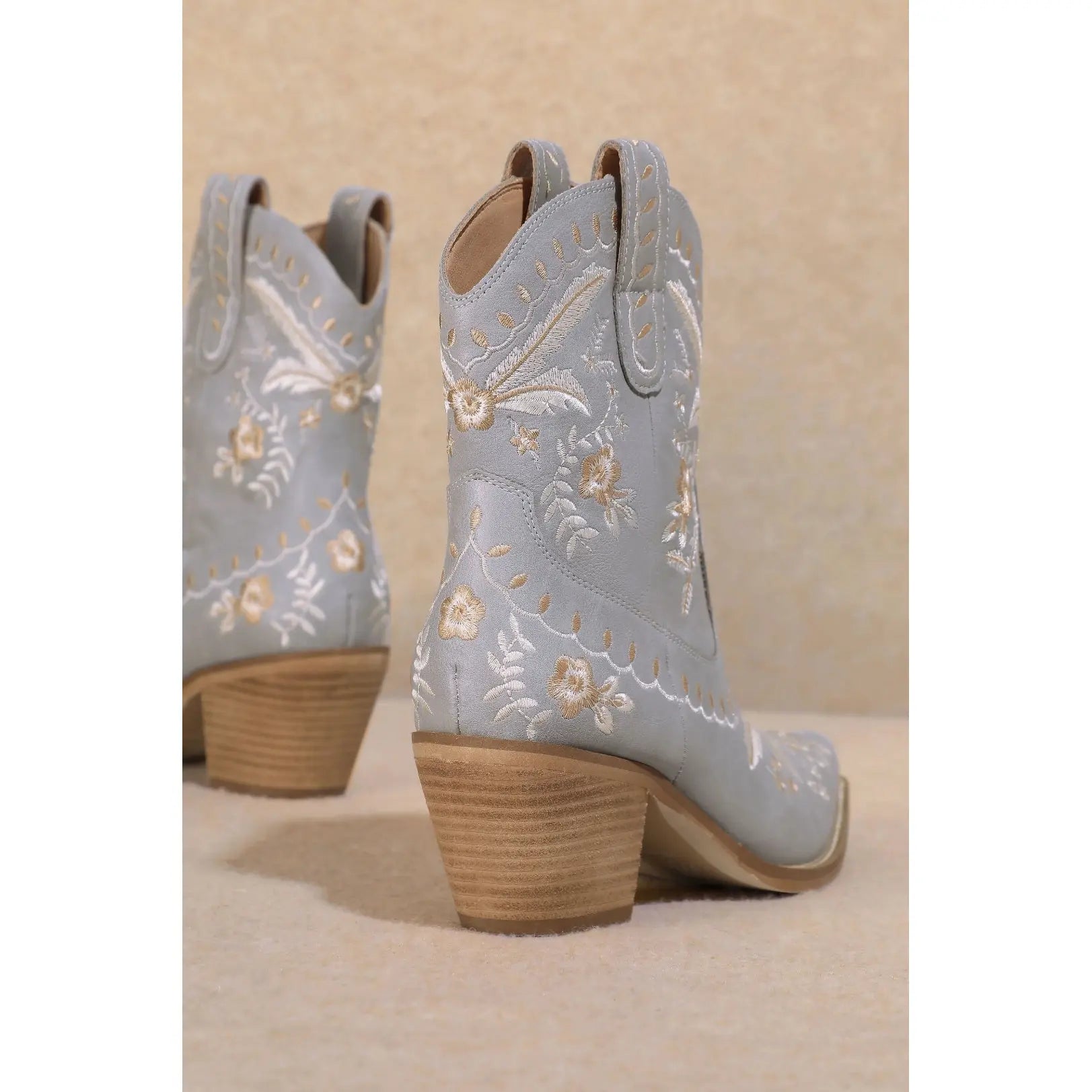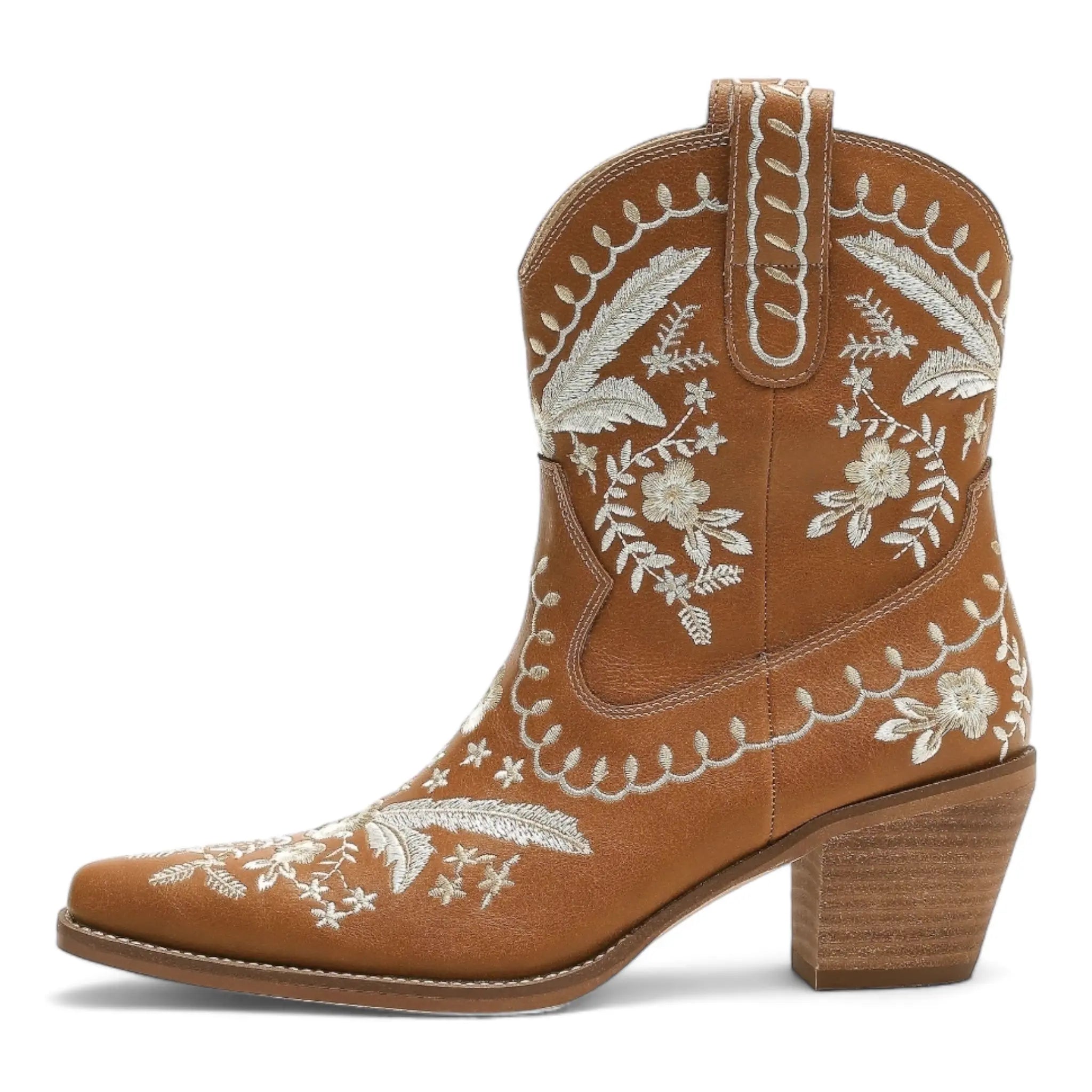 The Corral Boots, these boots feature classic western embroidery, a meticulously crafted wood grain heel, and a pointed toe, seamlessly blending traditional allure with contemporary style. Step confidently and make a statement in these exquisite cowgirl boots, embodying the flawless fusion of heritage and modernity.