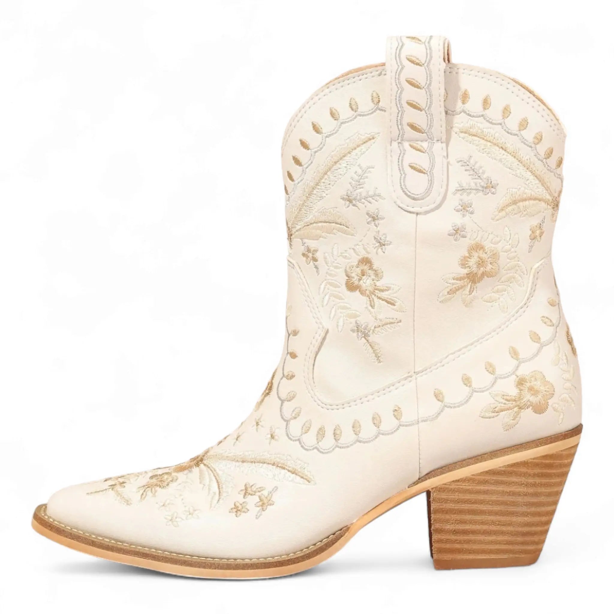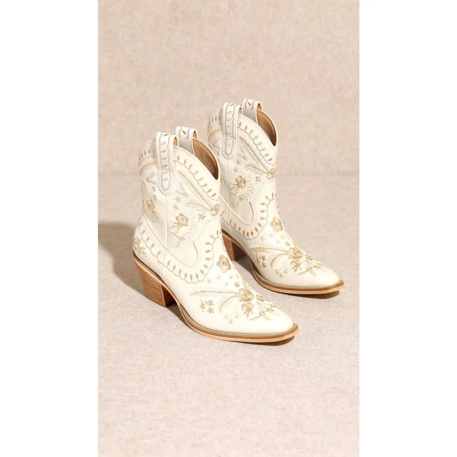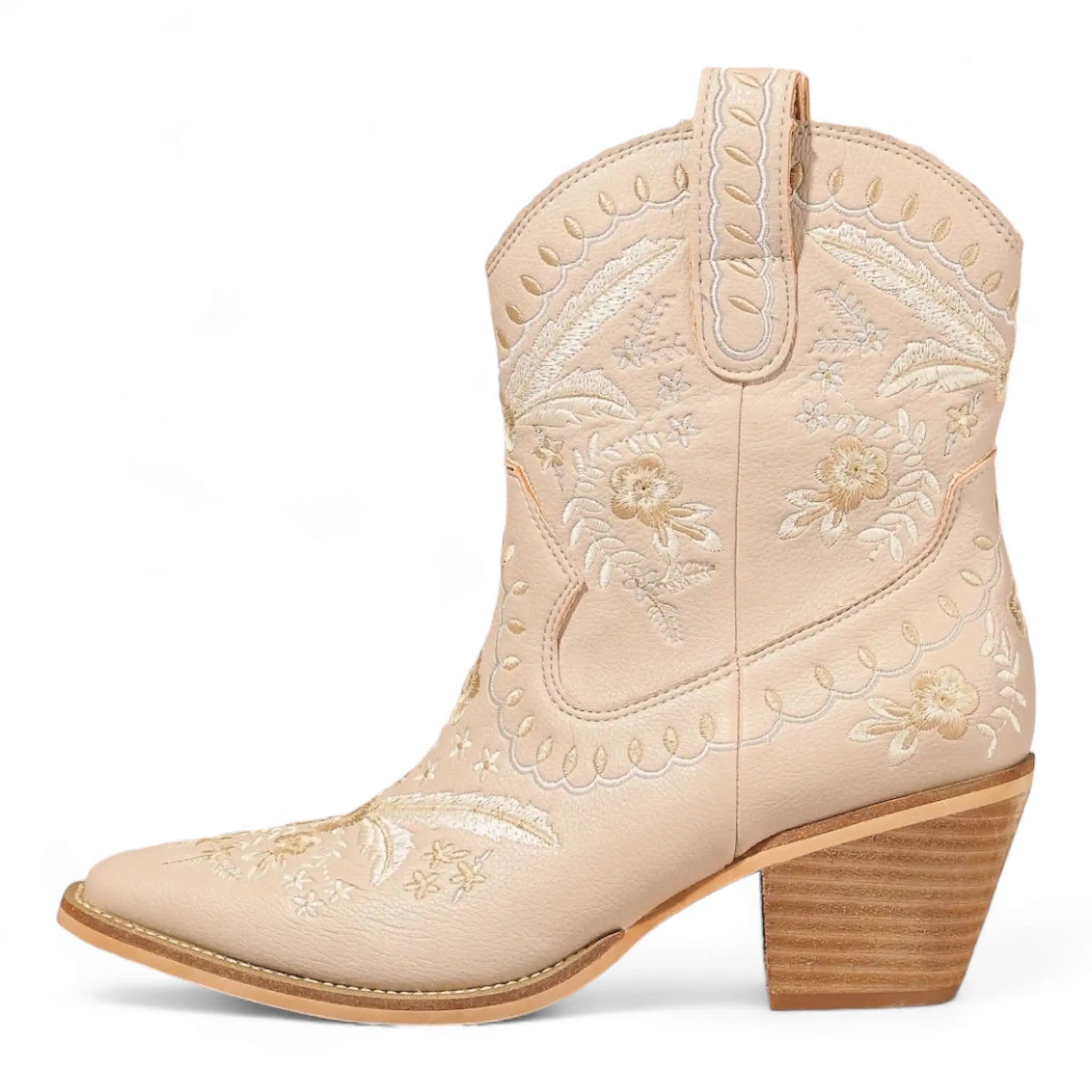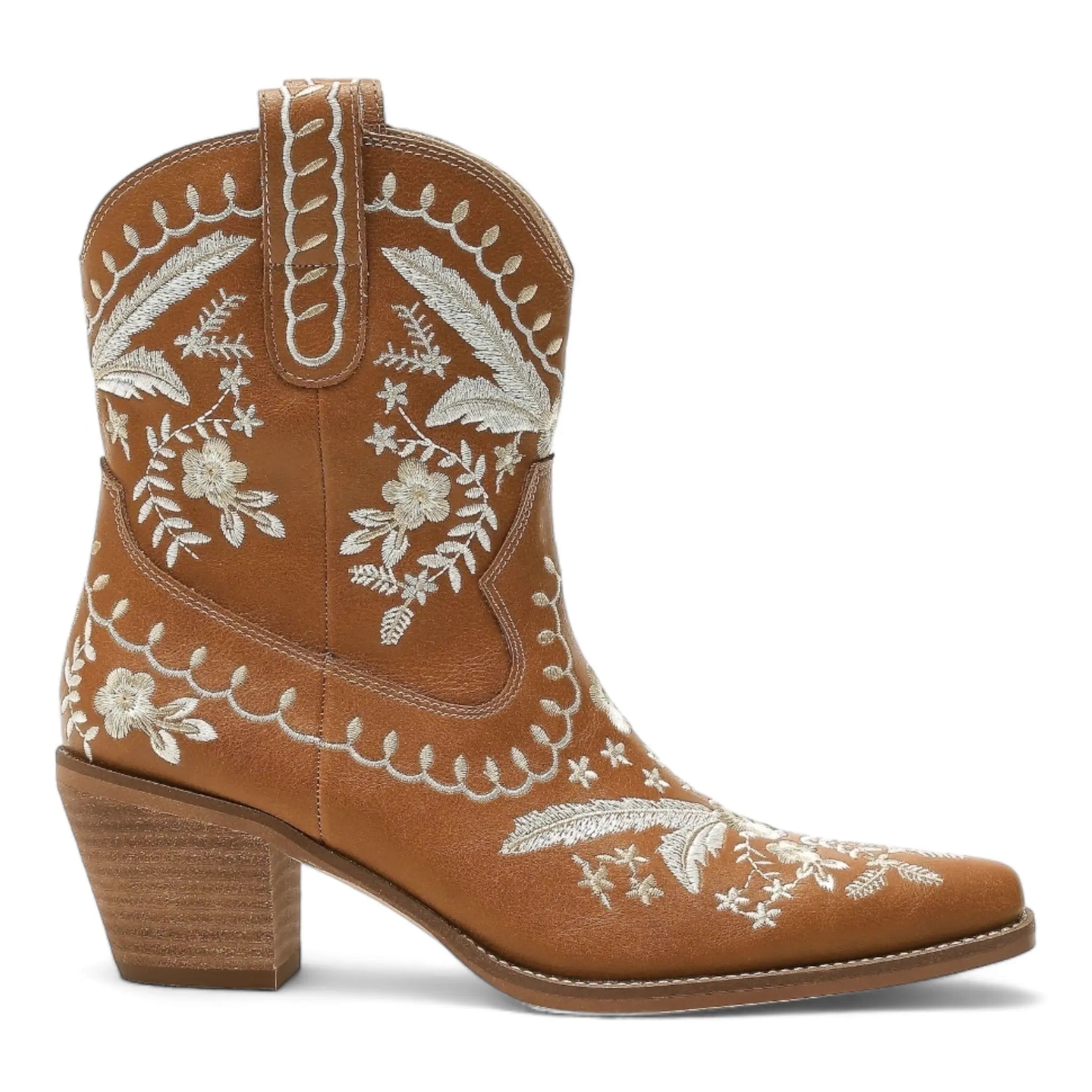 The Corral Boots, these boots feature classic western embroidery, a meticulously crafted wood grain heel, and a pointed toe, seamlessly blending traditional allure with contemporary style. Step confidently and make a statement in these exquisite cowgirl boots, embodying the flawless fusion of heritage and modernity.