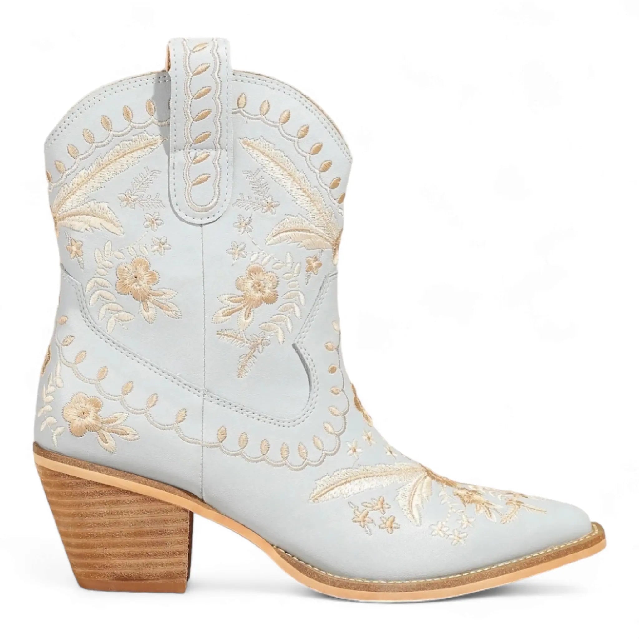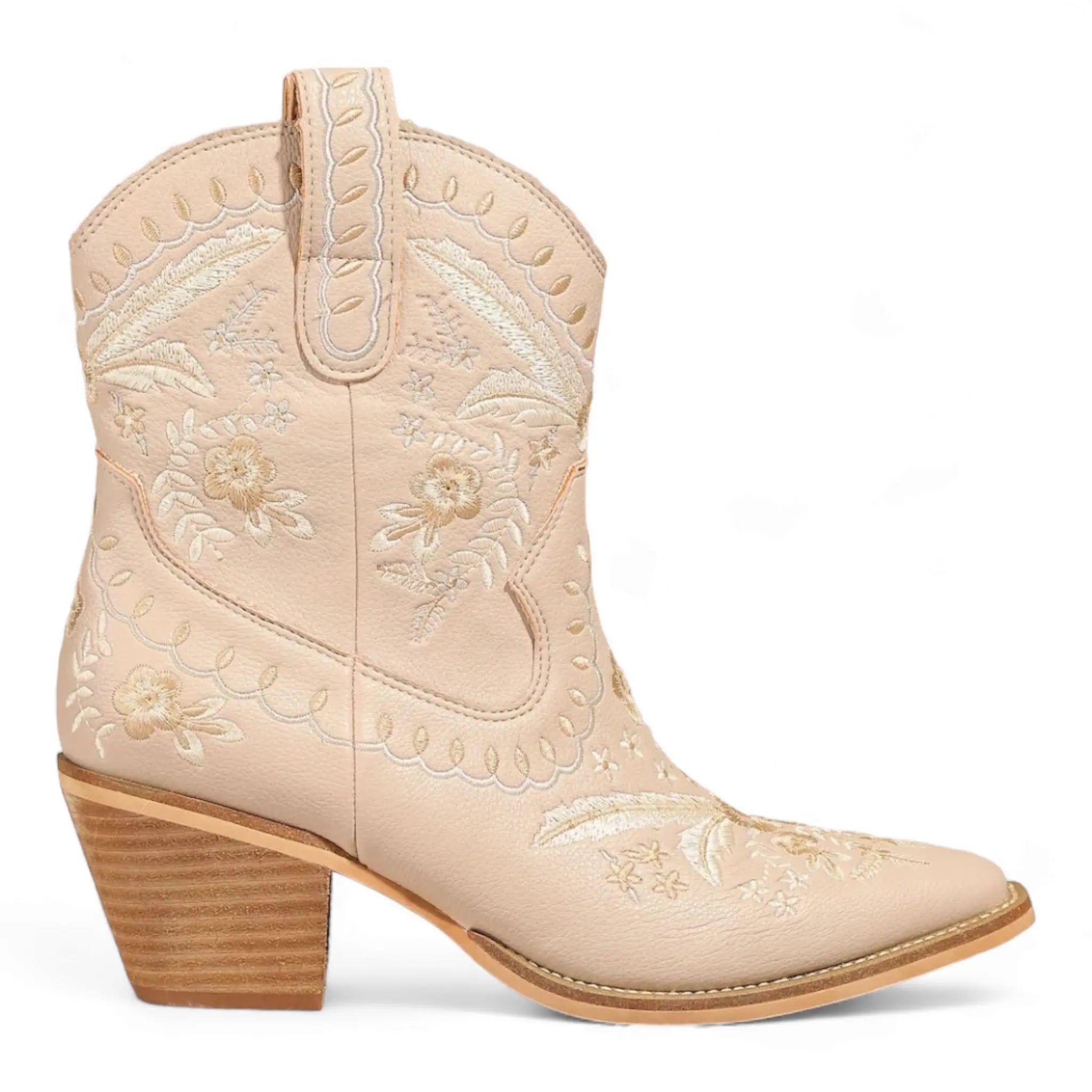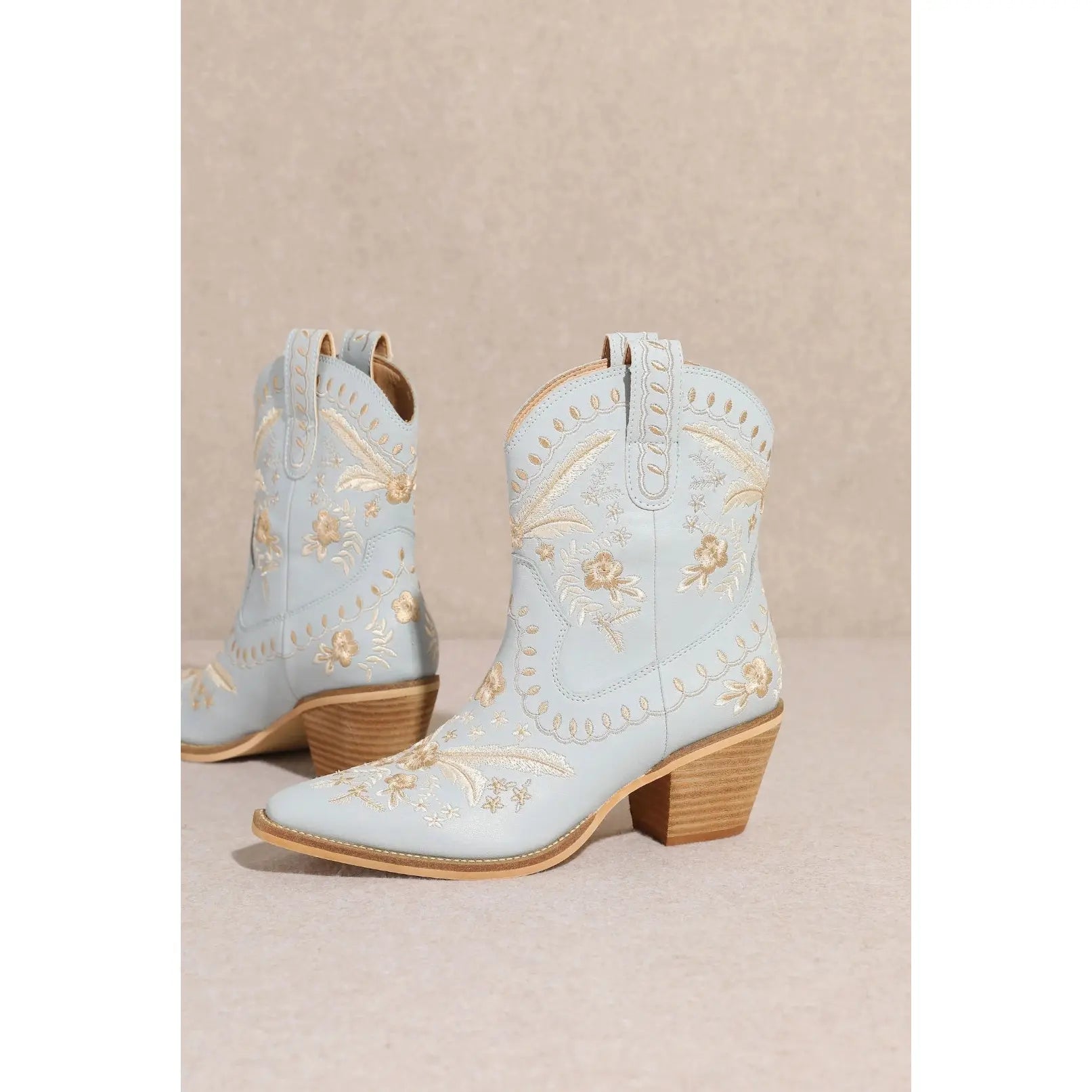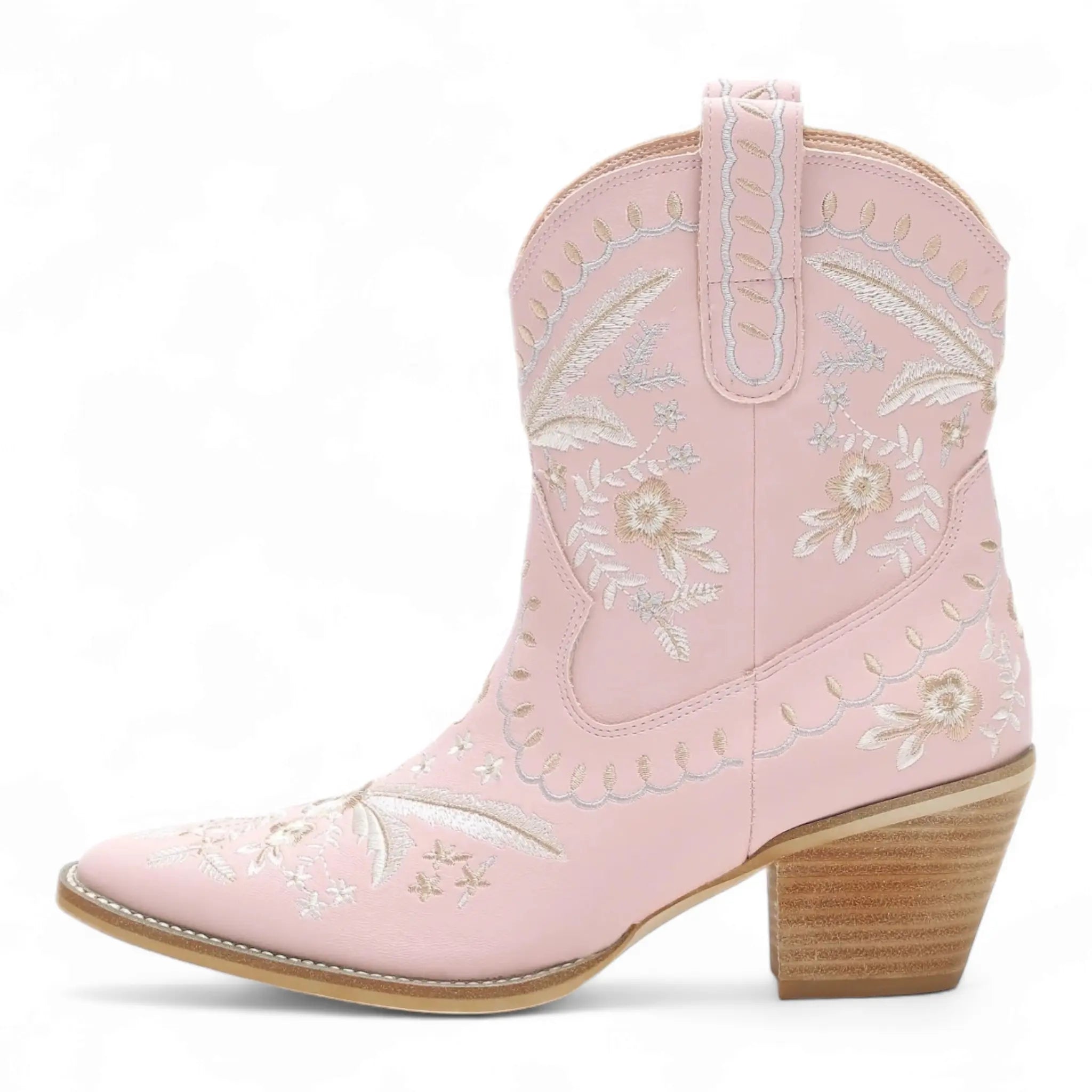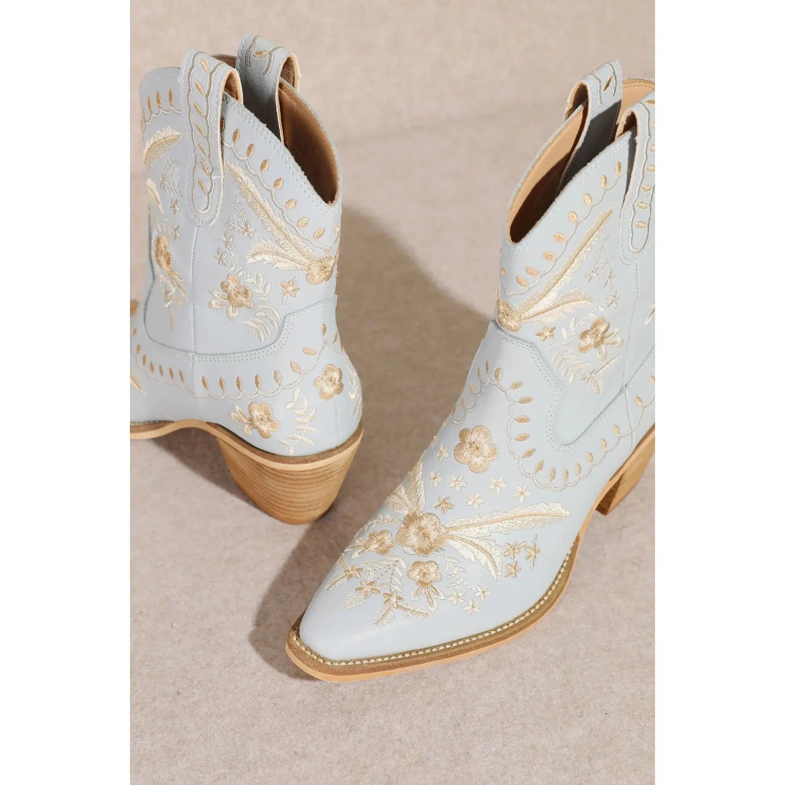 The Corral Boots, these boots feature classic western embroidery, a meticulously crafted wood grain heel, and a pointed toe, seamlessly blending traditional allure with contemporary style. Step confidently and make a statement in these exquisite cowgirl boots, embodying the flawless fusion of heritage and modernity.