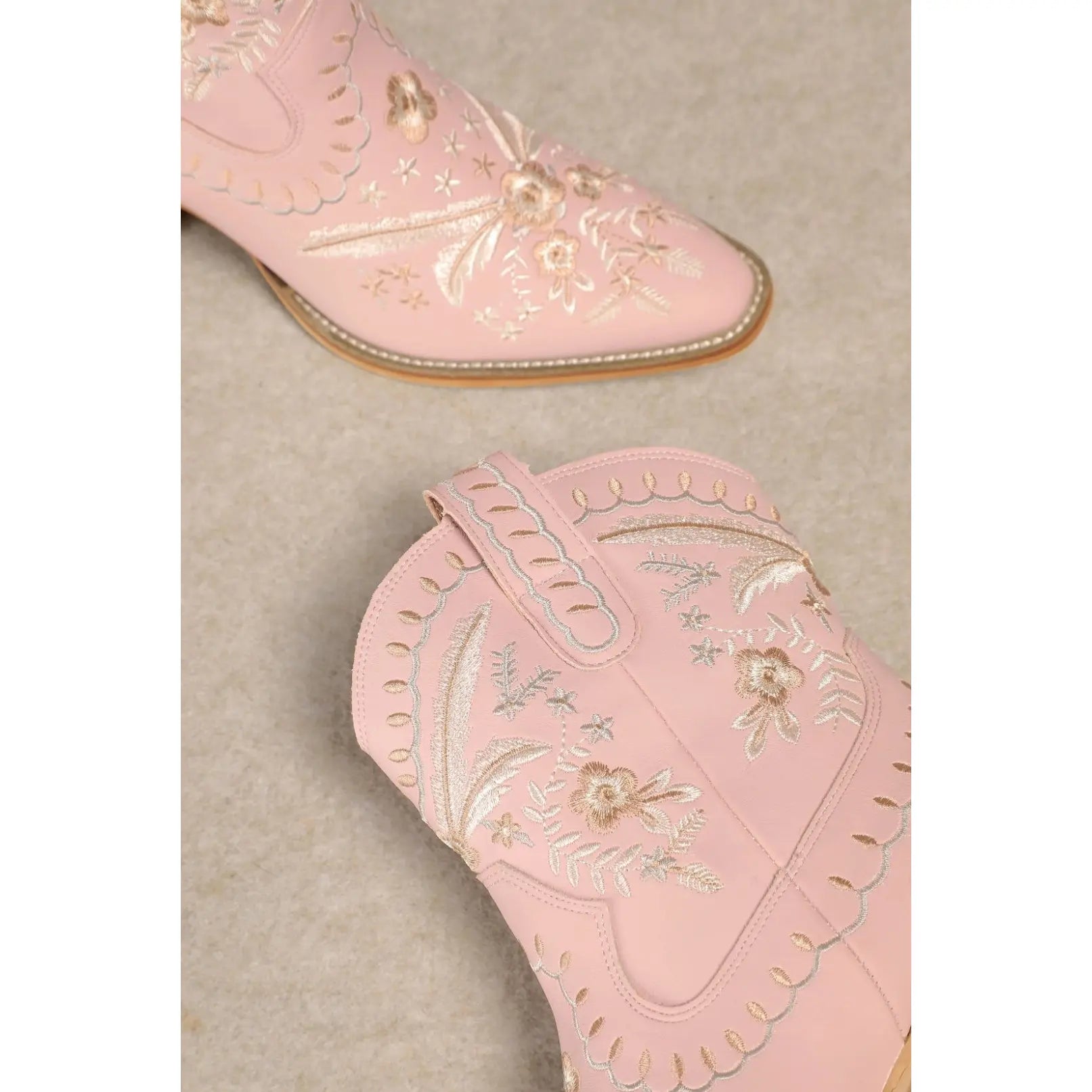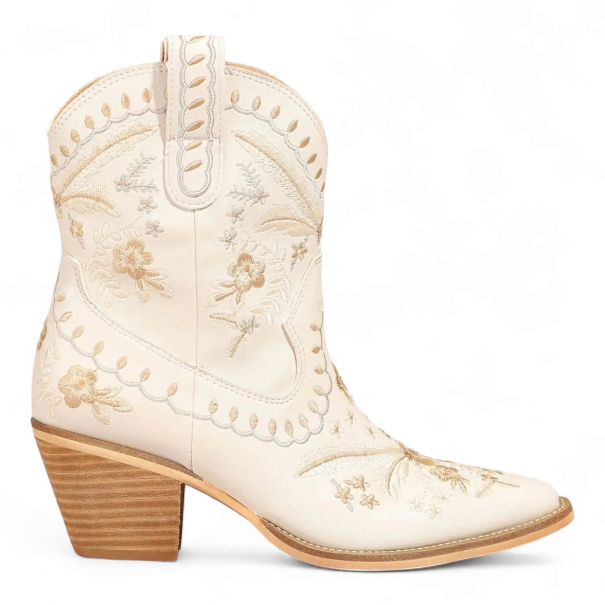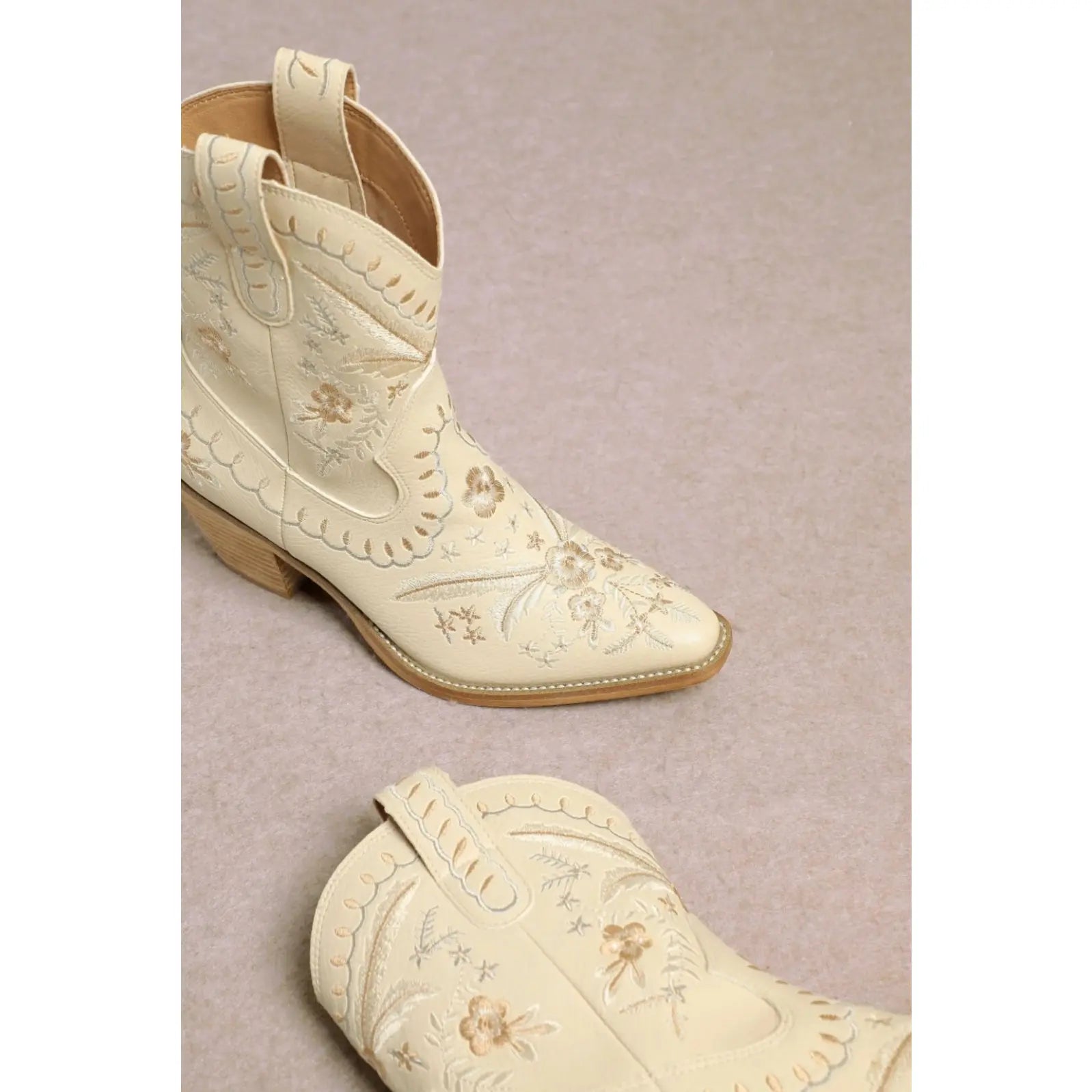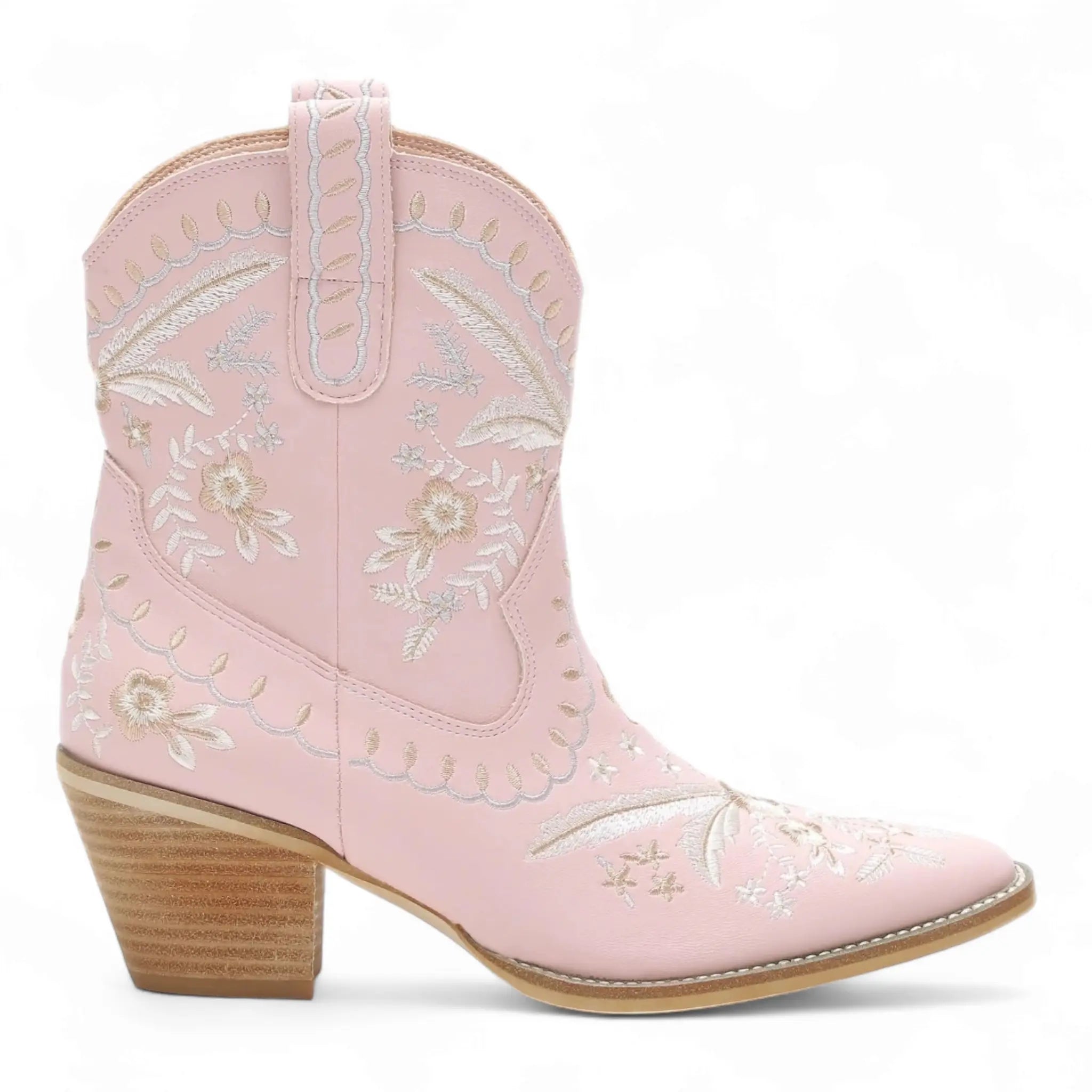 The Corral Boots, these boots feature classic western embroidery, a meticulously crafted wood grain heel, and a pointed toe, seamlessly blending traditional allure with contemporary style. Step confidently and make a statement in these exquisite cowgirl boots, embodying the flawless fusion of heritage and modernity.