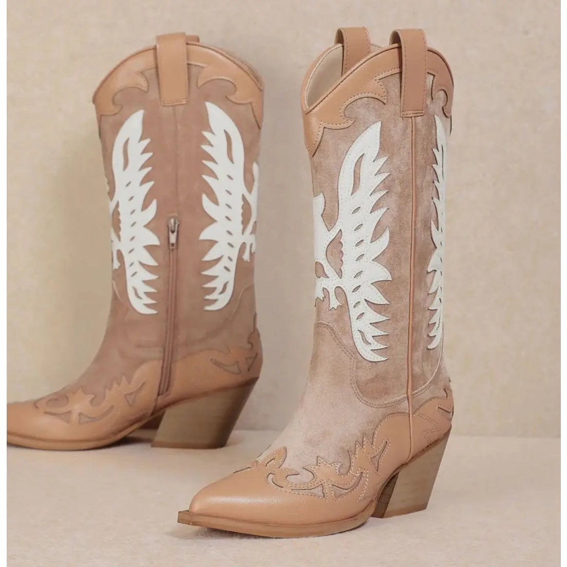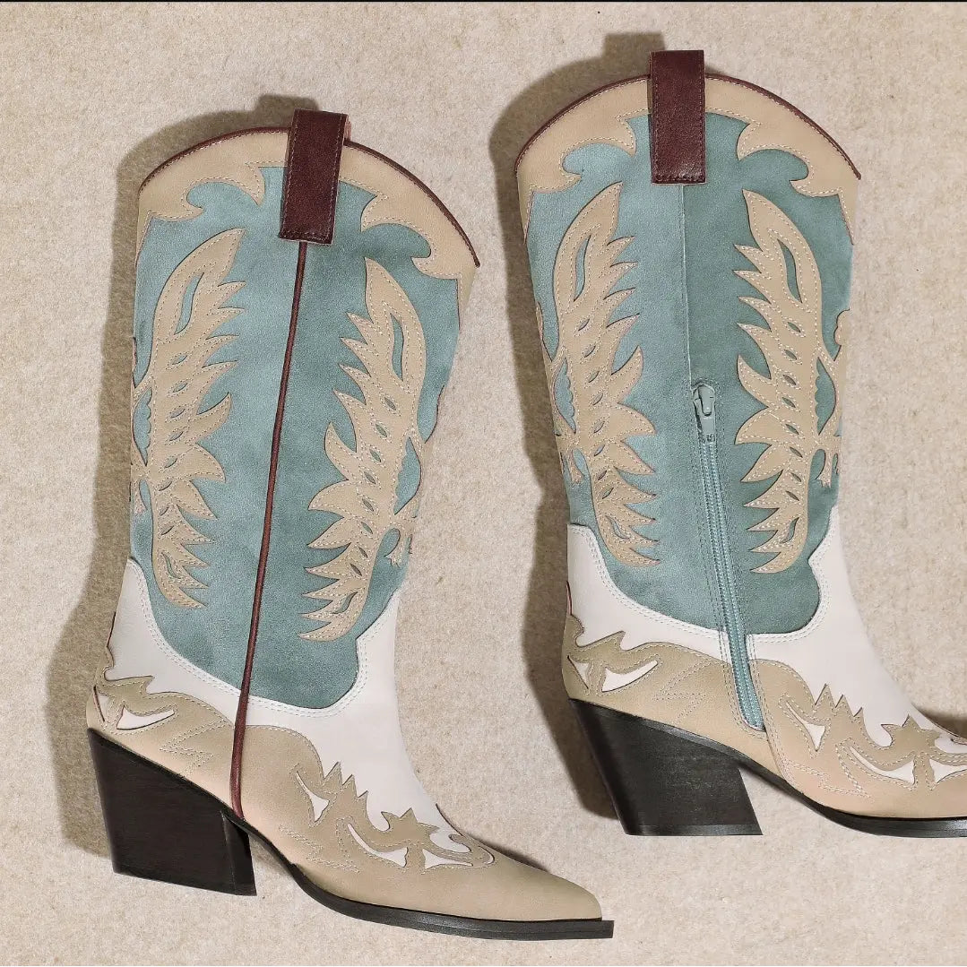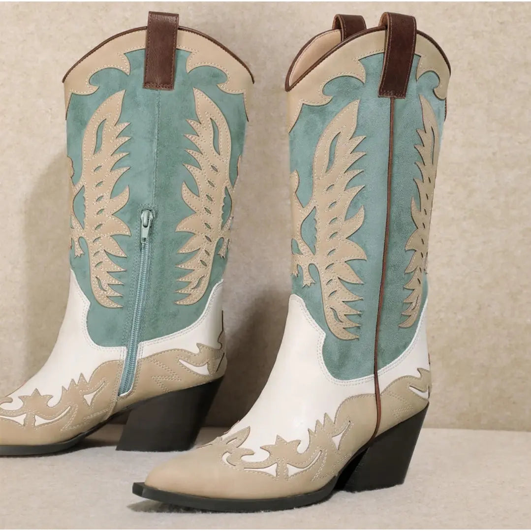 These Idaly Mid-Calf Cowgirl Boots are the perfect blend of style and comfort. The chunky heel provides stability and support while the pointed toe adds a touch of sophistication. Easy to slip on and with a trendy western design, these boots are a must-have for any fashion-forward cowgirl.