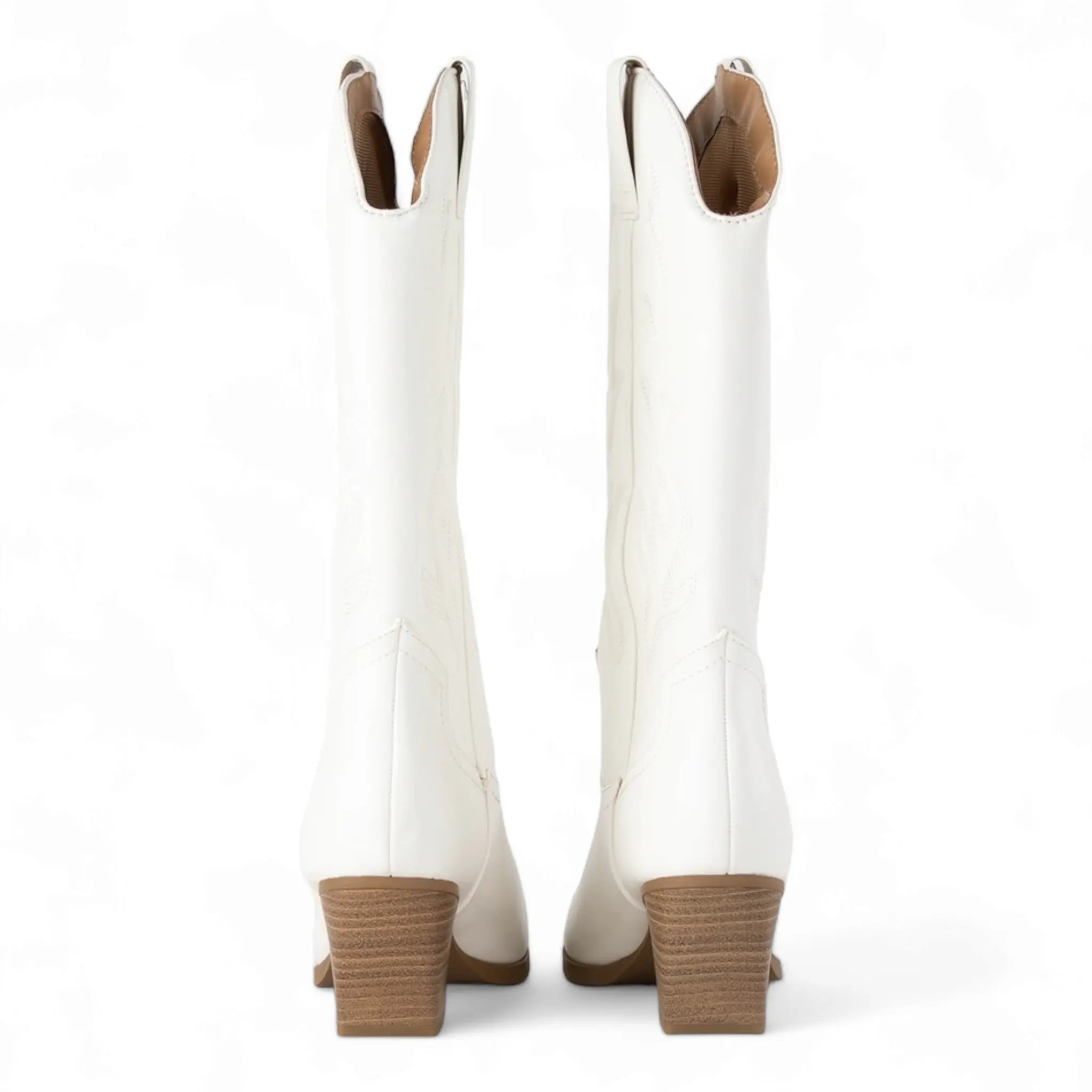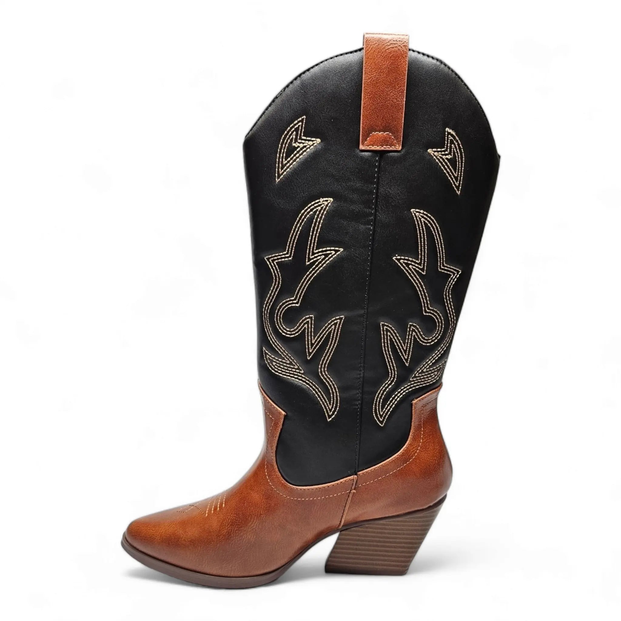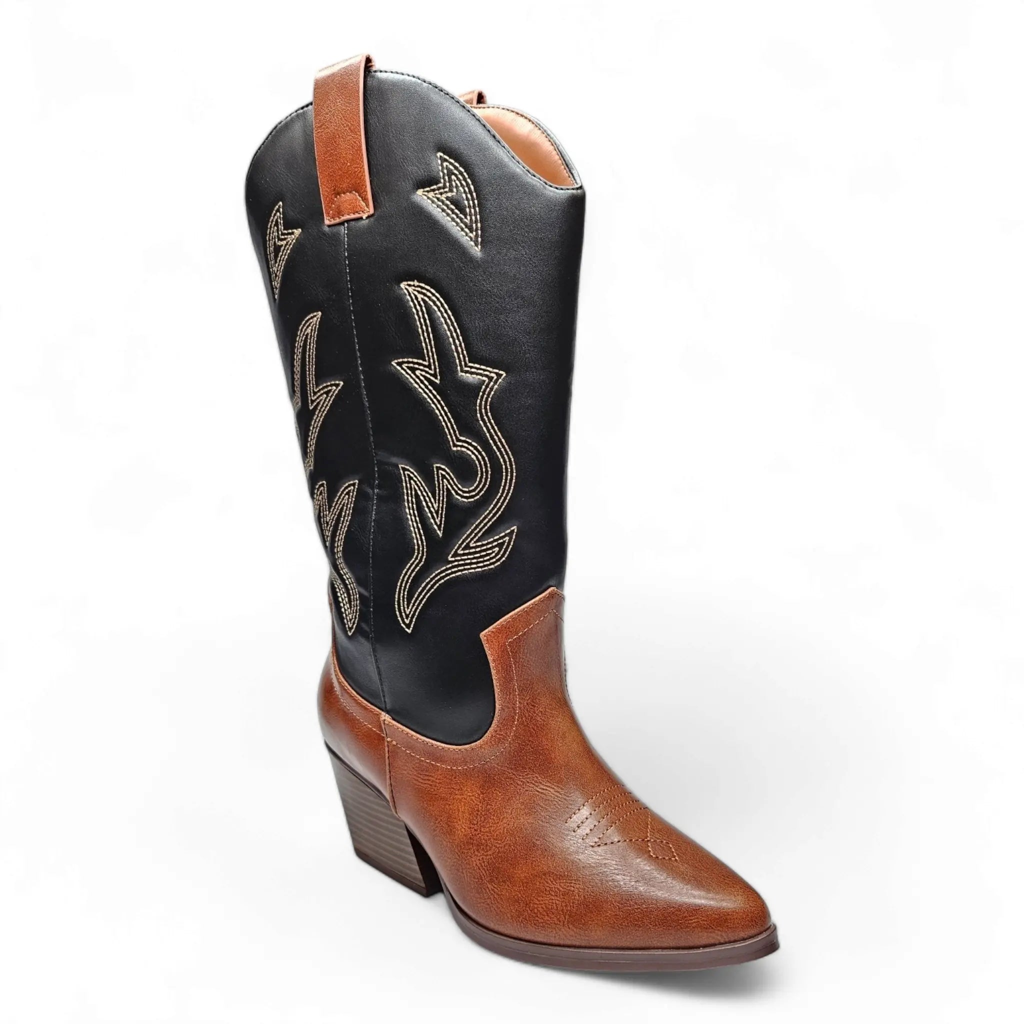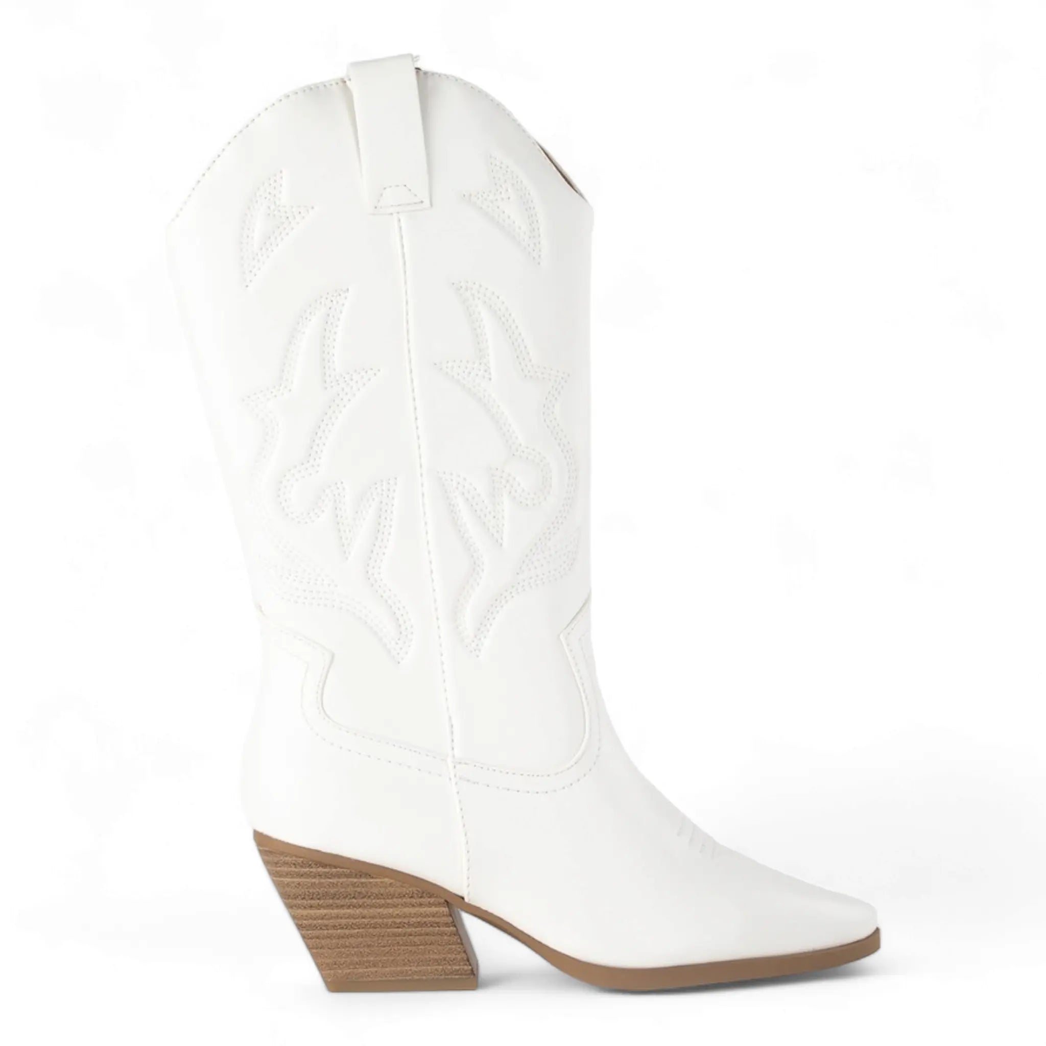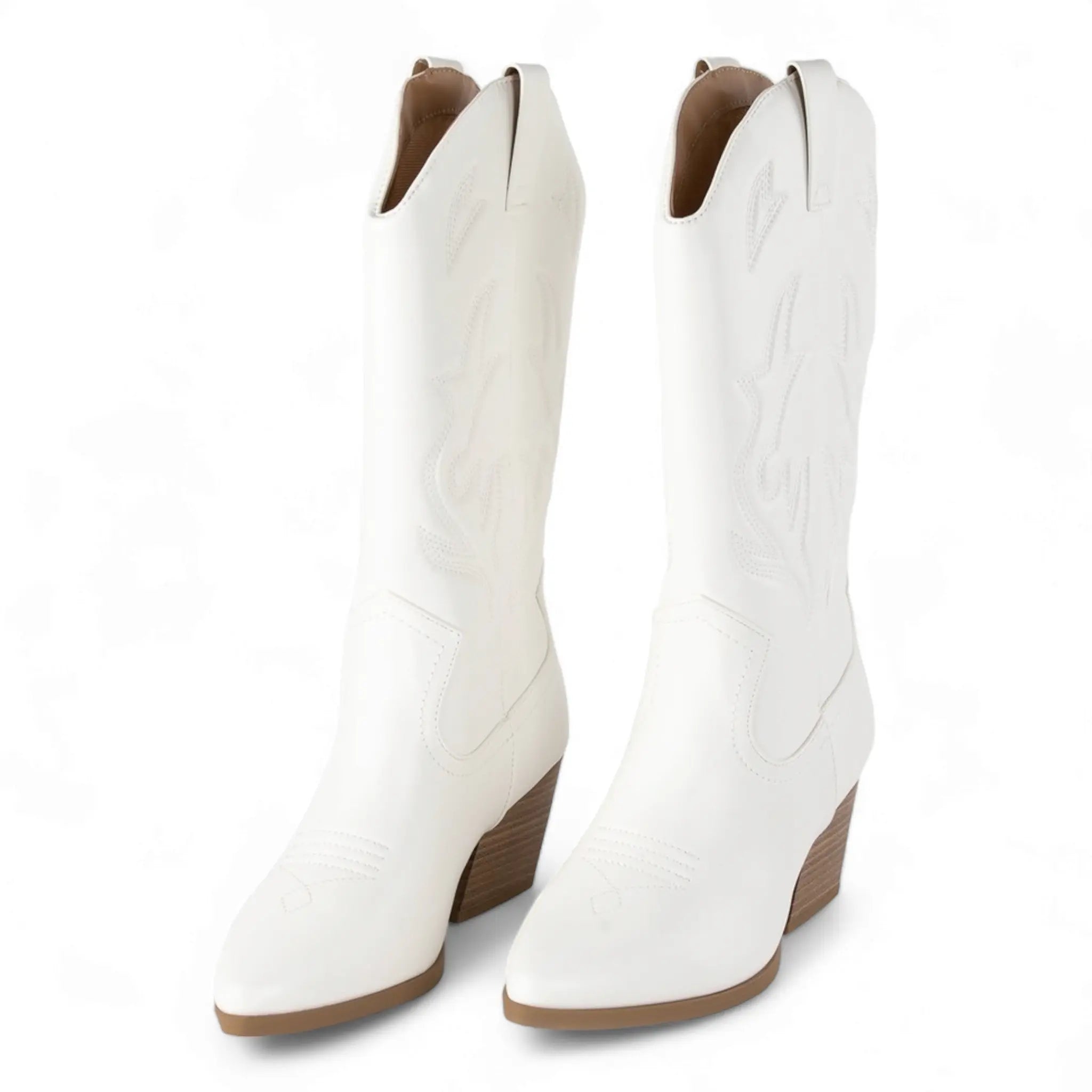 The Wild West Wonder Boots are the perfect choice for fashion-forward cowgirls. With stunning stitching detail and a comfortable stacked heel, these western boots feature a classic pointed toe and a charming look that will turn heads.