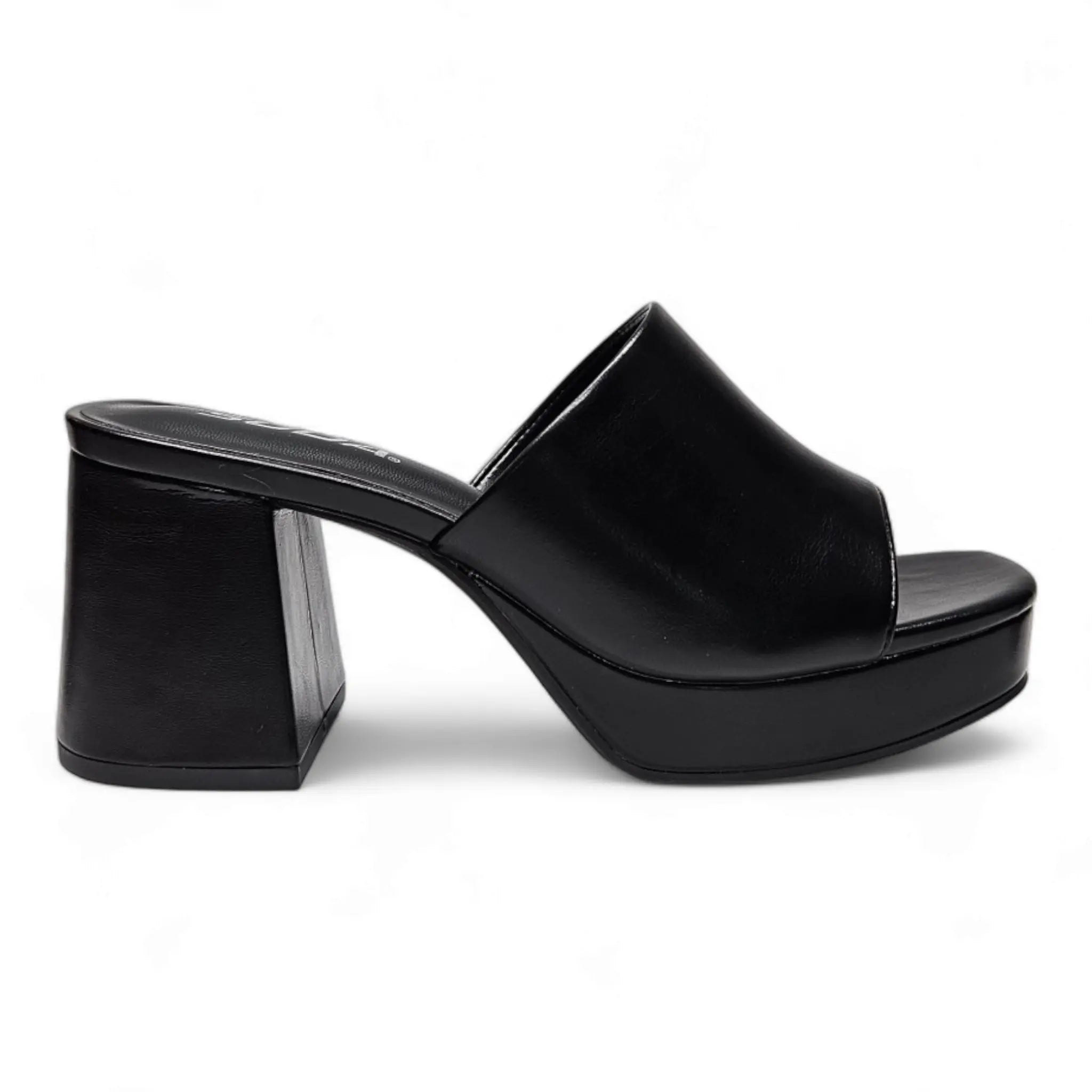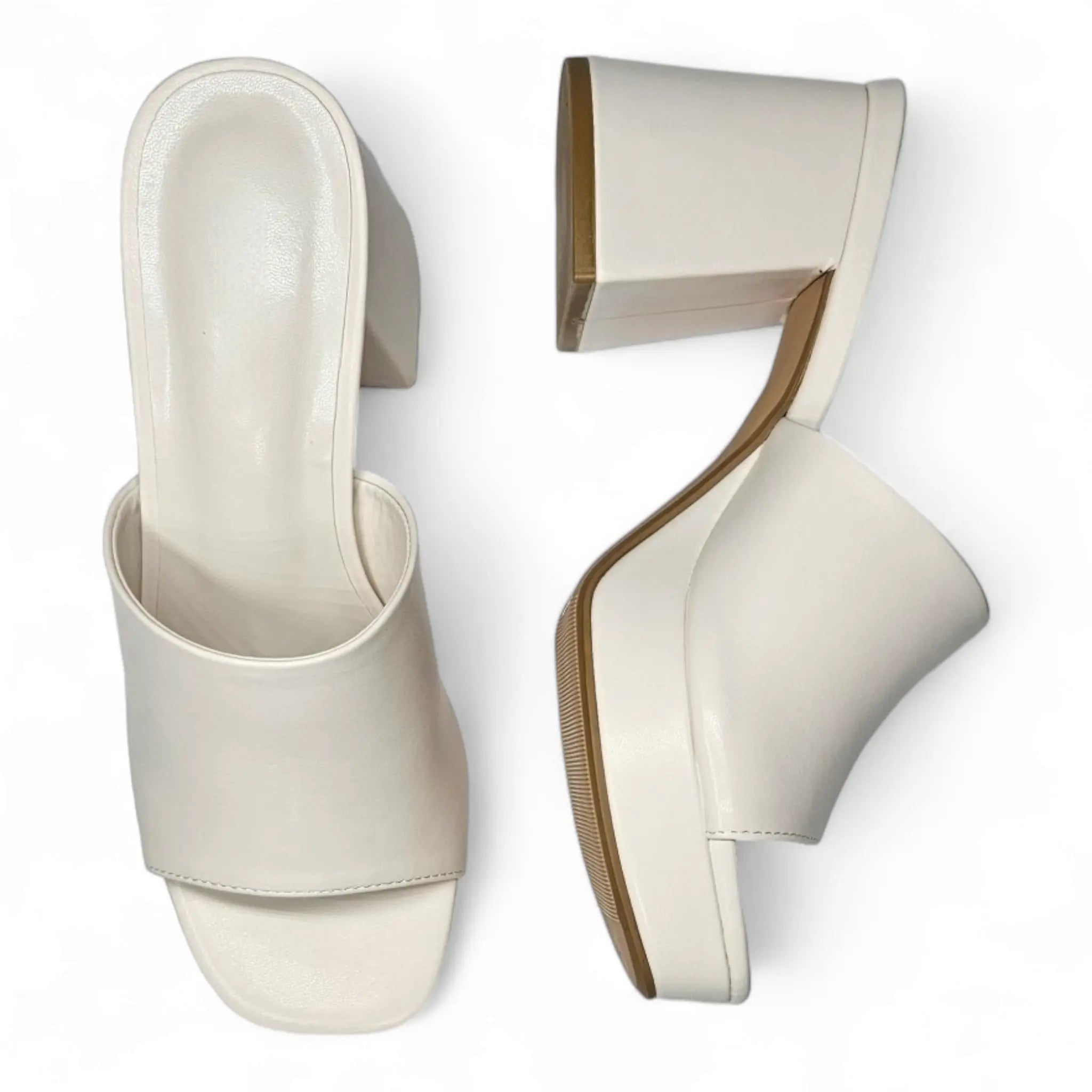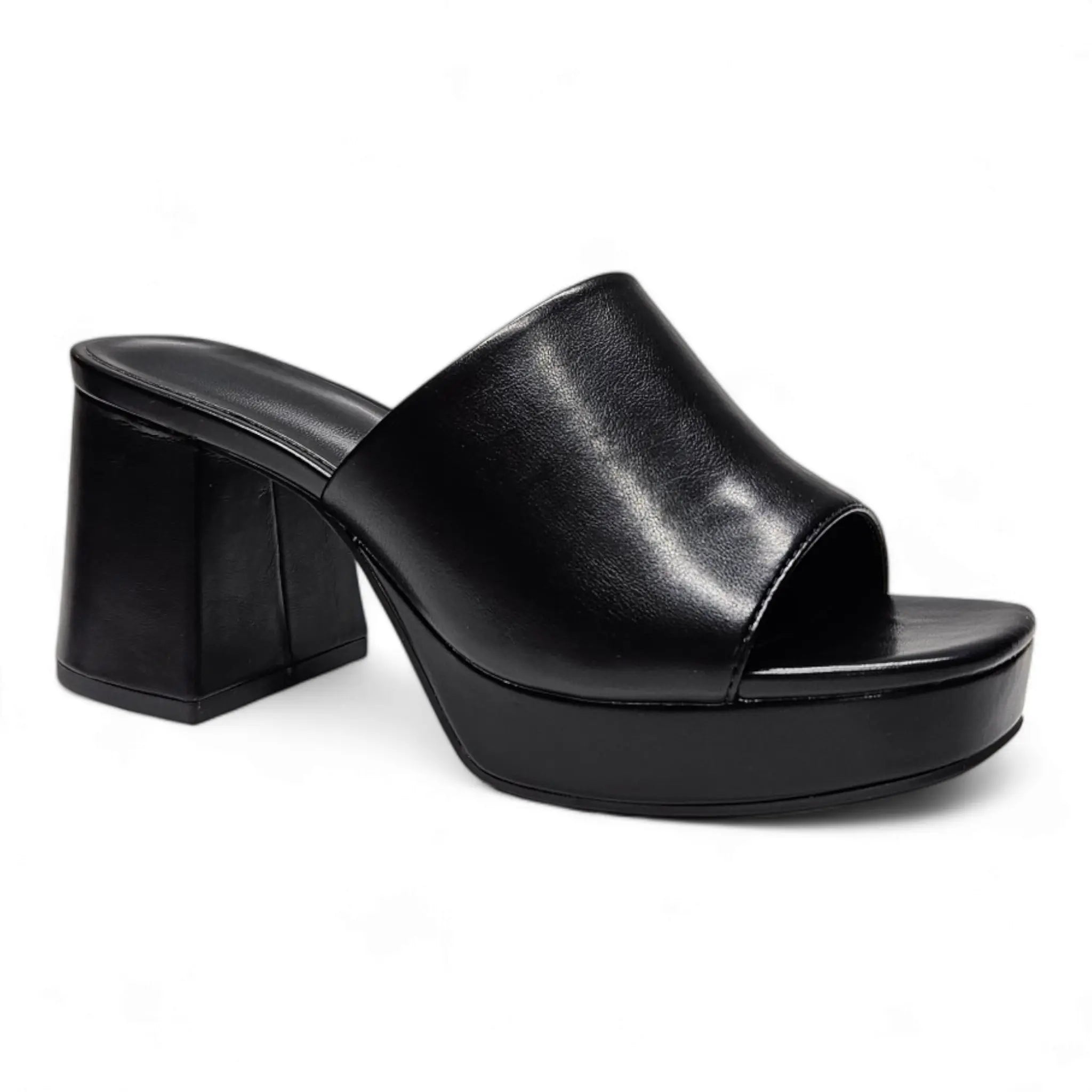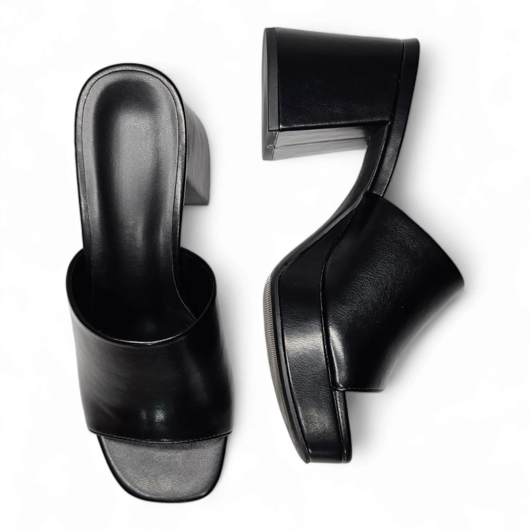 Step back in time with these retro platform heels! The Zafer slide sandals feature a faux leather upper and a comfortable cushioned footbed, making them perfect for all-day wear. With a 2 inch platform and 3 inch chunky heel, these stylish heels also provide a light traction outsole for added stability. Elevate your fashion game with these chic and comfortable vintage-inspired heels.